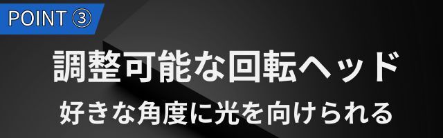 真っすぐだけでなく、斜め、真横、自由自在に照らせます。