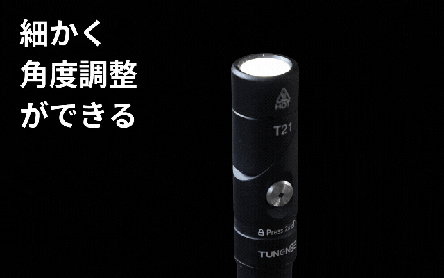 最大1400ルーメン×高輝度6500Kを誇る「TUNENGE T21」は、高輝度な明るさに加えて、ヘッド部分を回転させて、光を好きな方向に当てられるモデルです。