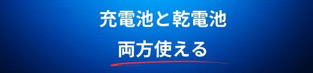 付属の充電池に加え、乾電池も使えるデュアルバッテリーモデル。