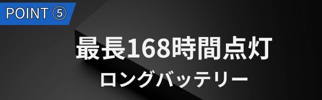 最大168時間の連続点灯が可能なため、停電や緊急時の際に役立ちます。