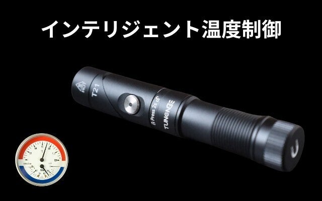 Turbo(ターボ)モード使用中に、懐中電灯内が高温を検知すると、自動的に温度を制御する機構が働き明るさを低下させコントロールします。