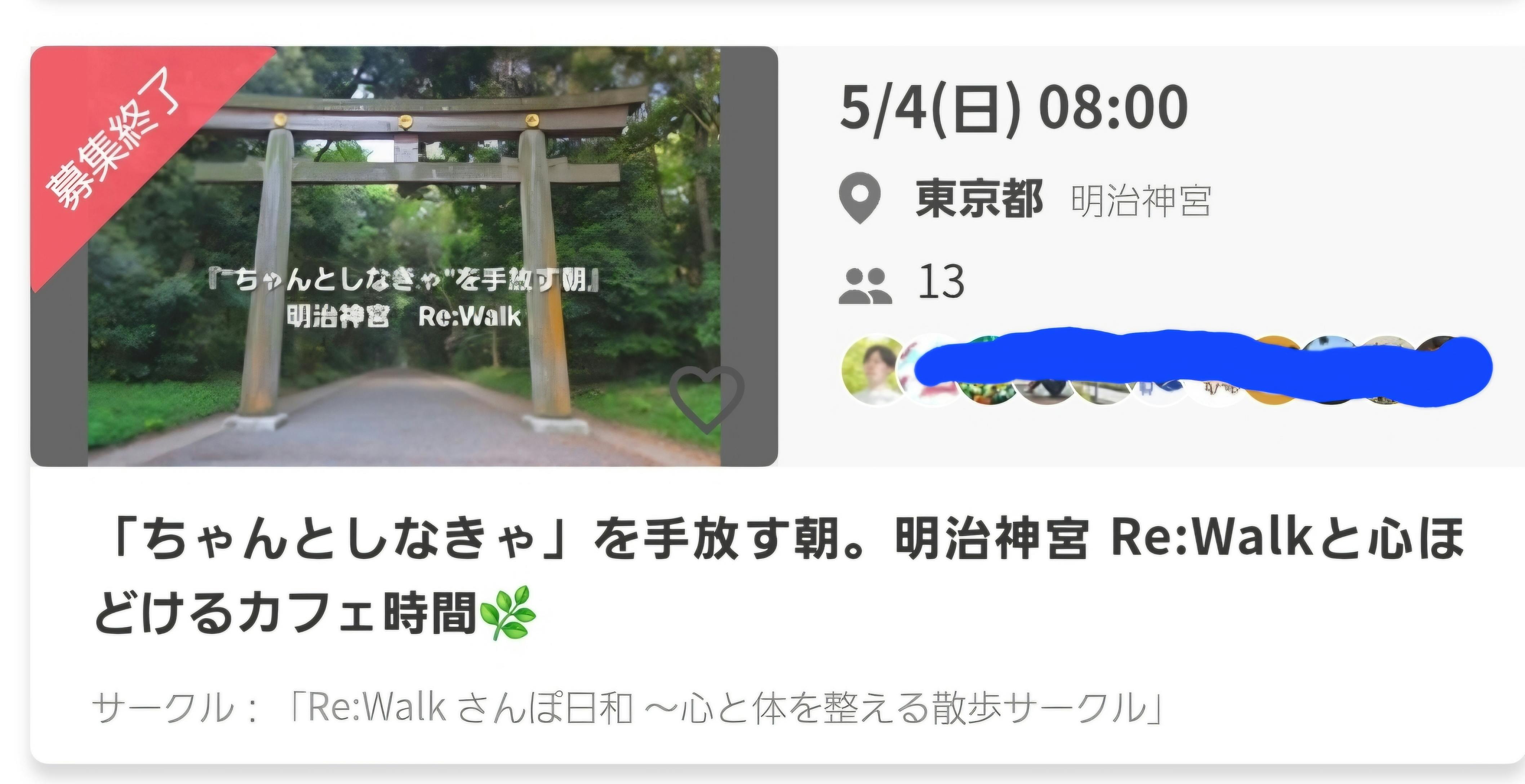 もっと見る5/18(日)明治神宮Re:Walk活動報告
