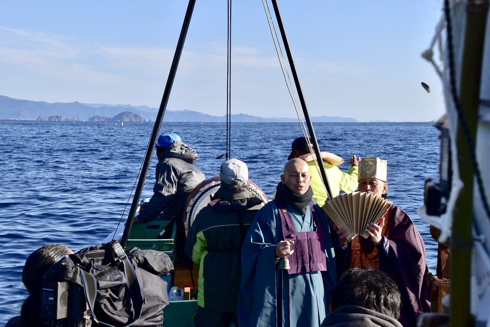 にほんの里100選にも選ばれた趣ある尾鷲市須賀利町では、海まちならではの年間行事も行われています。 年明けには 地元の方々とともに、魚類の供養、海上安全や豊漁を祈願する普済寺での大般若祈祷会と船上での供養「石経」に参加しました。 町のシンボルの一つでもある普済寺は、寛永元年(1624)創建。幕末の文久元年(1861)に、竹中工務店の祖、尾州名護屋の竹中和尚が宮大工を務め再建された、町を象徴するお寺です。 そこから眺める美しい景観には、思わずシャッターを切る人の姿も。石経の当日は報道陣の姿も多く見られ、船は海難があった場所をまわり、住職がお経を唱えるなか、供養のお供えや般若心経266文字が1字ずつ書かれた石を漁場に投げ入れ祈願し、ジング(神宮)さんといわれる岩場に竹笹が奉納されました。 須賀利の石経は今年で394回目。例年に比べ穏やかな波でいい日和だった。伝統行事は今後も続けていきたいと声が上がりました。 今後も地域活動に継続して取り組んでいきます。
