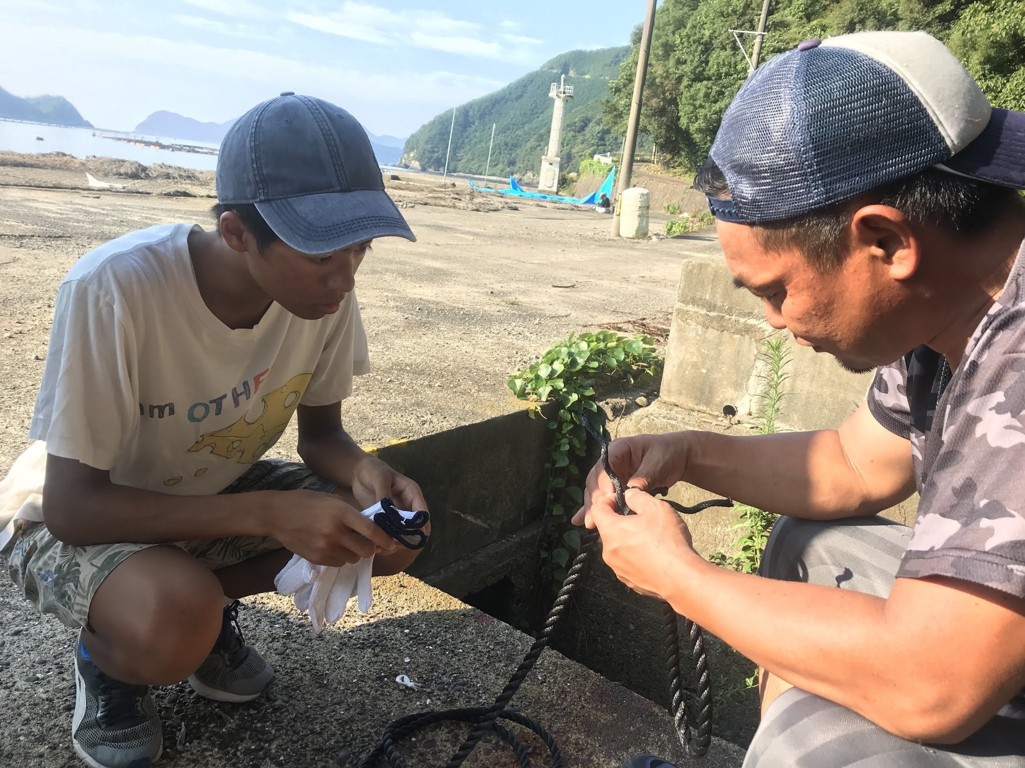 未来教育デザインConfeito 山本先生、山藤先生たちとの産官学連携の取り組みとして、高校生のみなさんが 三重での水産事業の活動を体験できる、夏のフィールドワークが行われました。 日本が抱える課題の現状を体感できる機会。パッケージツアーではなく高校生たちが主体的に取り組む活動です。 自社便に乗り現地へ到着してからは、はじめての土地と自然を前に試行錯誤。漁をはじめ、定置網の骨組み部分に使用されるロープの組み方を教わったり、普段 立ち会えることが少ない網入れも体験。 今後もより多くの方に、知って頂ける、感じて頂ける機会を作っていきます。