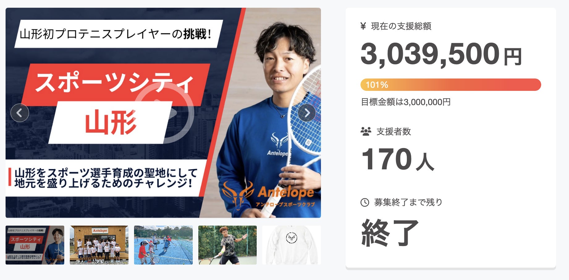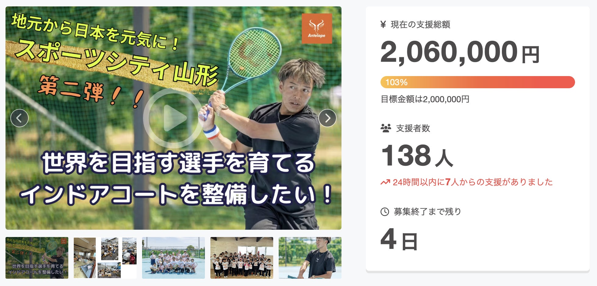 その第一歩として昨年、スポーツ人口増加のためにテニスコートを増やす資金を集めるクラウドファンディングにチャレンジし、多くの応援・後押しをいただいた結果、300万円を超えるご支援をいただくことができました!