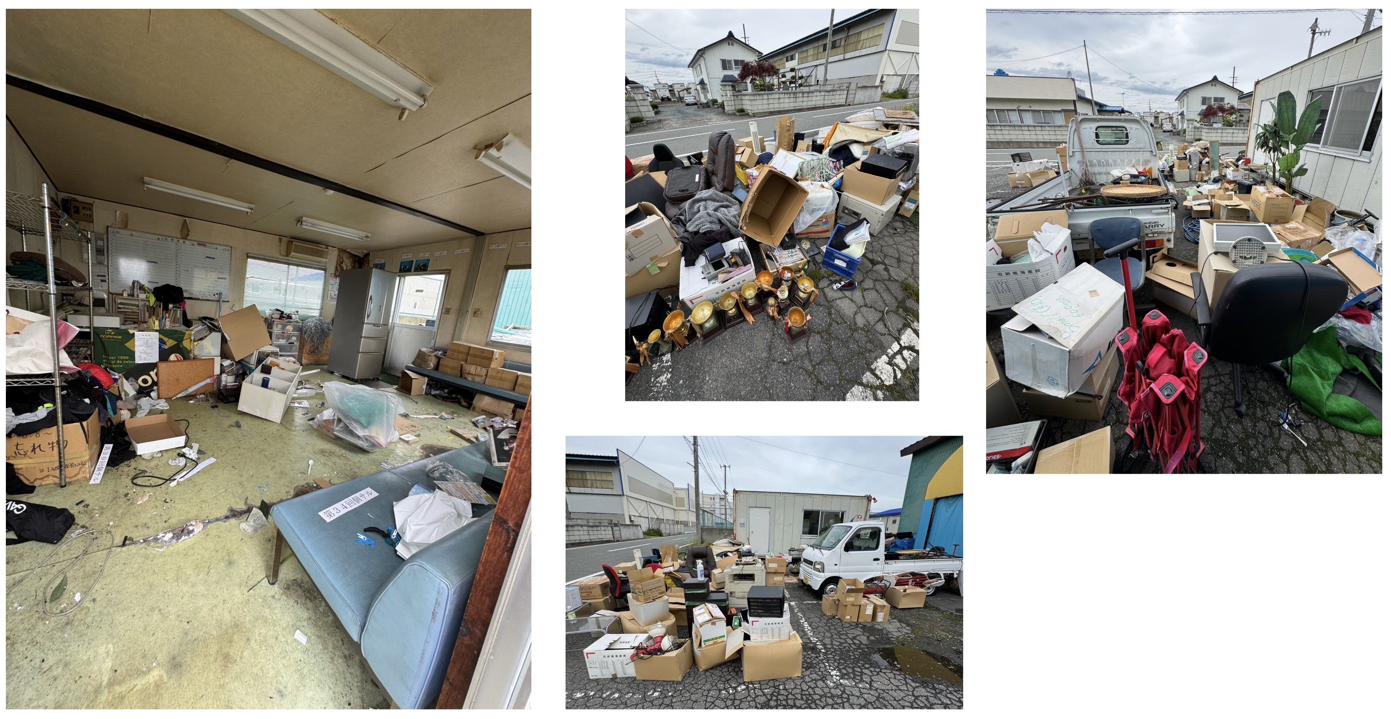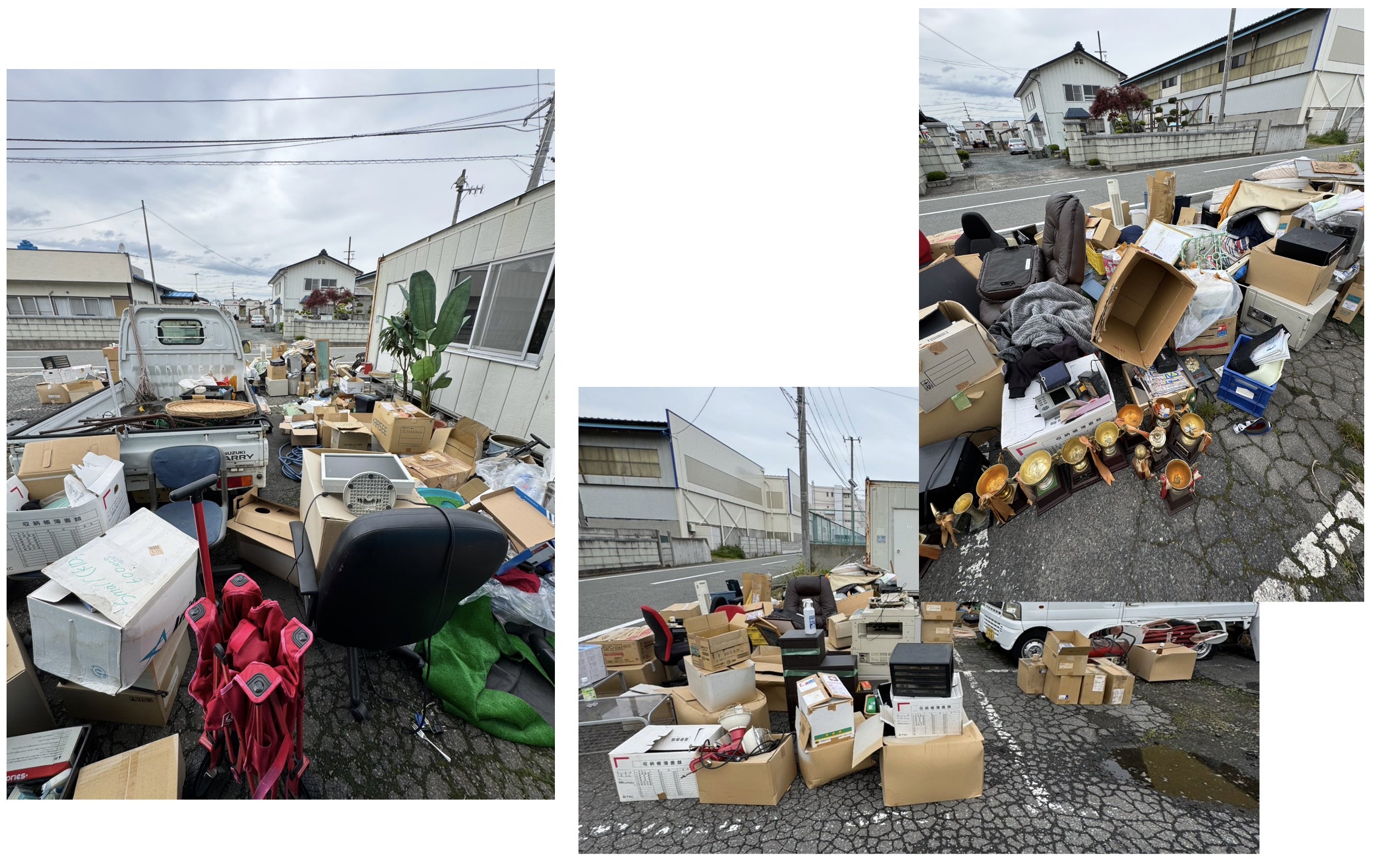 まずは箒とコロコロを持って綺麗にするところから始めて、自分で片付けたり引き取ってもらったり、地元の業者さんにリサイクルしてもらったりしましたが、未だ膨大な量のゴミが残っている、という現状です。