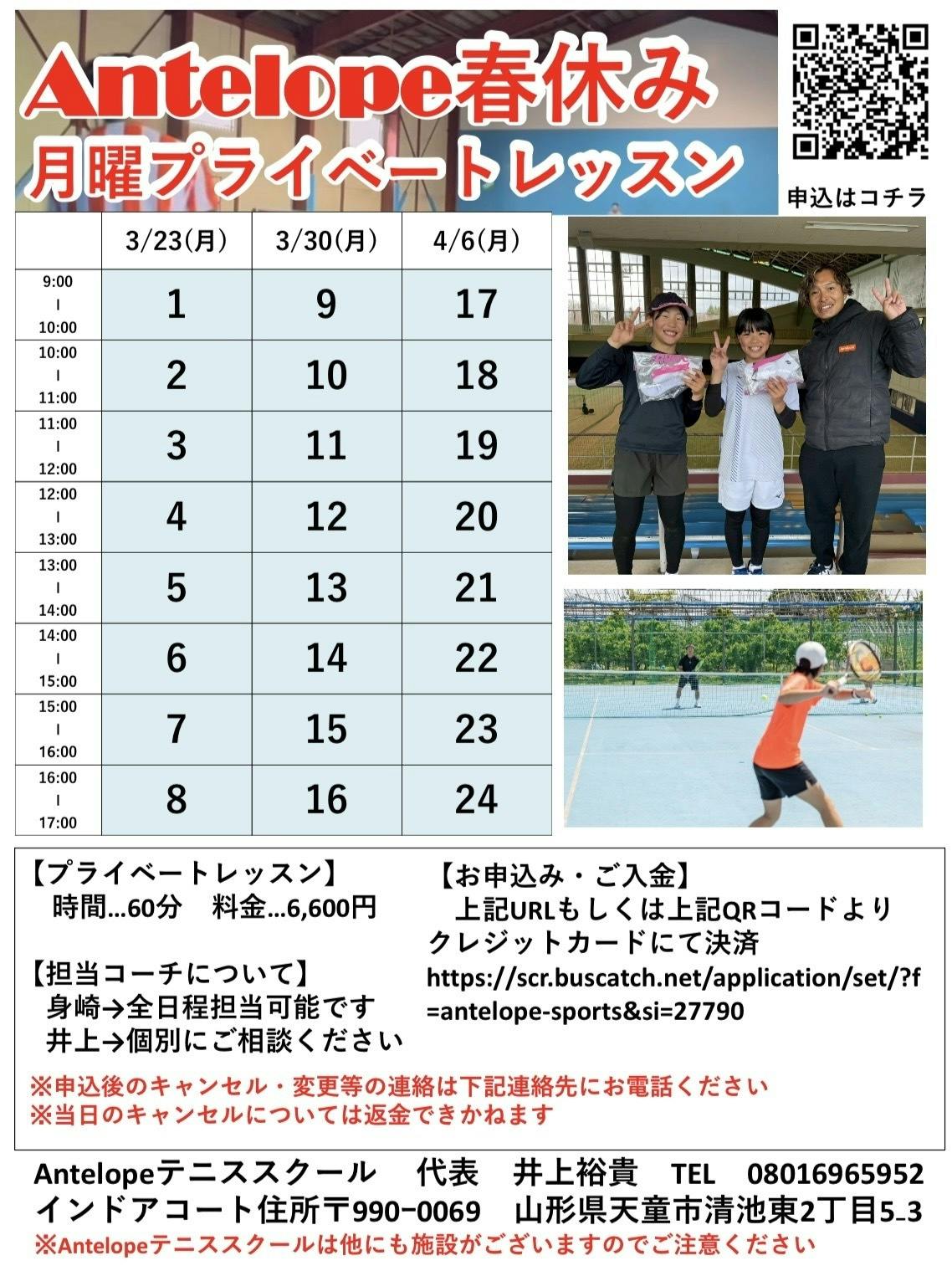 もしお近くにテニスに興味のある方や、スクールを探している方がいらっしゃいましたら、ぜひAntelopeをご紹介いただけましたら幸いです。