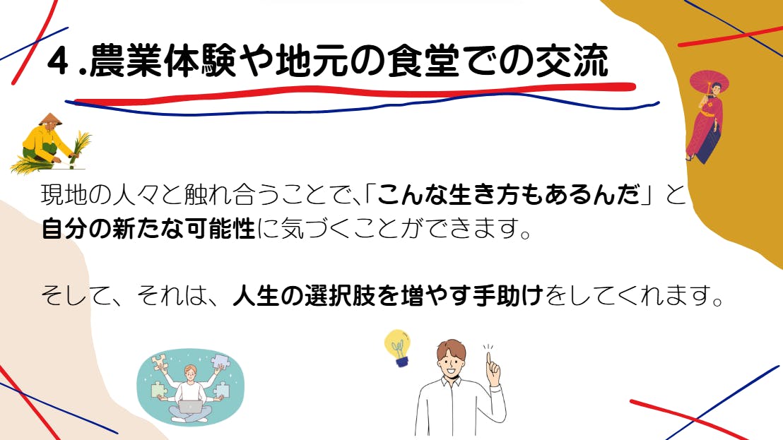 私たちは、単なる海外体験ではない、そのような「自己改革の拠点づくり」を目指します。
