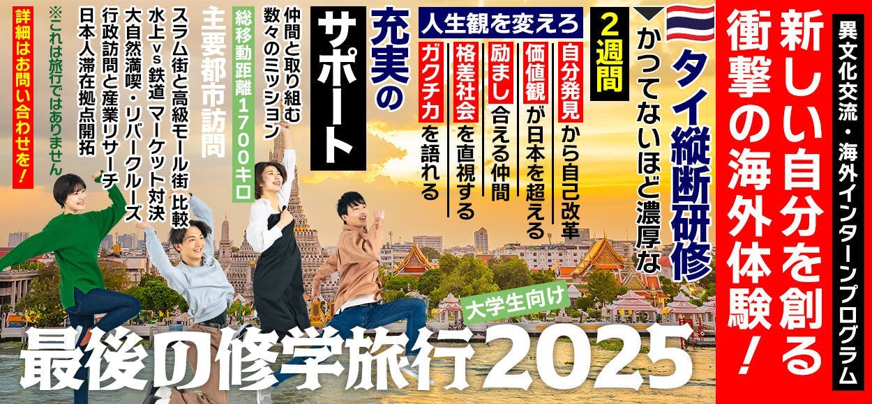 この研修プログラムを企画・監修したスタッフは、中学〜高校の多感な時期をバンコクで過ごし、人種差別、経済格差、路上生活の子どもたちを目の当たりにして、己の無力さを突き付けられ、心に深い傷と“誓い”を刻んだ と言います。