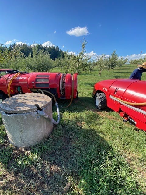 毎日、薬剤散布で使うスプレヤーで用水路や、井戸から水を汲み