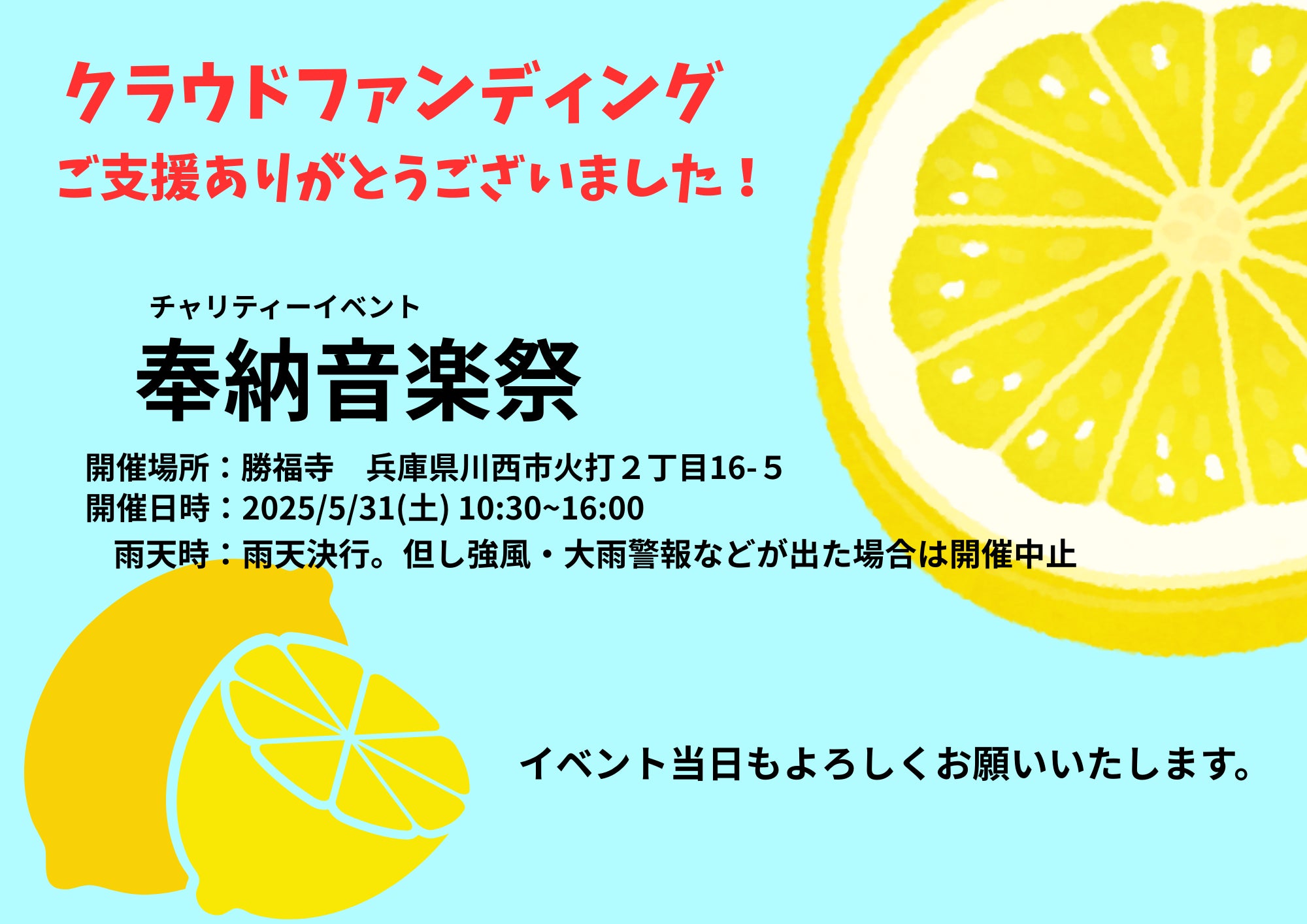 レモネードプロジェクトにご支援いただき、心より感謝申し上げます。皆さまの温かいご支援のおかげで、私たちは一歩前へと進むことができました。今回のプロジェクトは、「小児がんについてもっと知ってもらいたい」という想いからスタートし、多くの方々の力をお借りしながら形にしていくものです。ご支援いただいたことは、単なる資金面でのサポートにとどまらず、私たちにとって大きな励みとなりました。今後の進捗やリターンの発送など、随時ご報告させていただきますので、引き続き見守っていただけますと幸いです。本当にありがとうございました。今後ともどうぞよろしくお願いいたします。