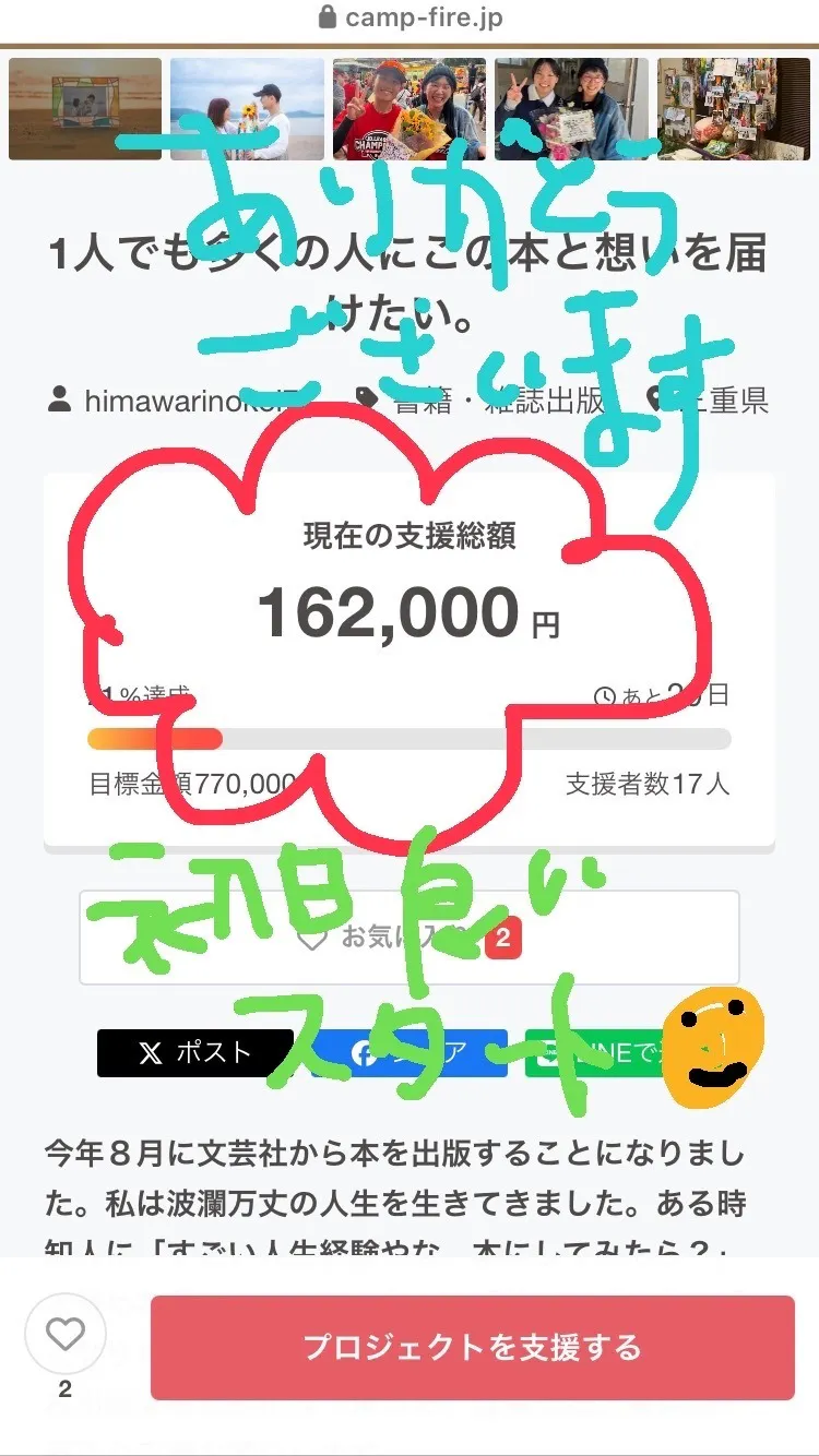 おかげさまで、初日からとてもたくさんのご支援いただき嬉しいです。