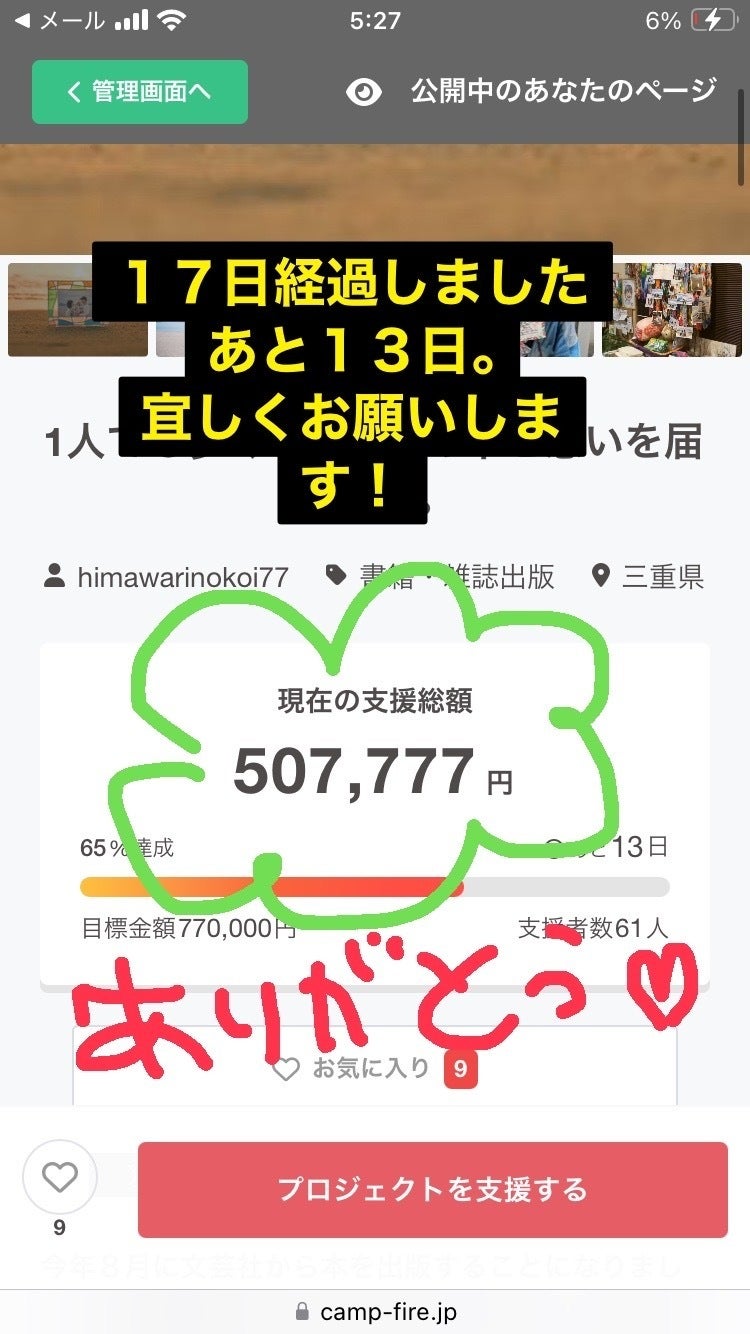 だんだんと終わりが近づいてきています。一人一人の気持ちがとても嬉しく思います。ありがとうございます。