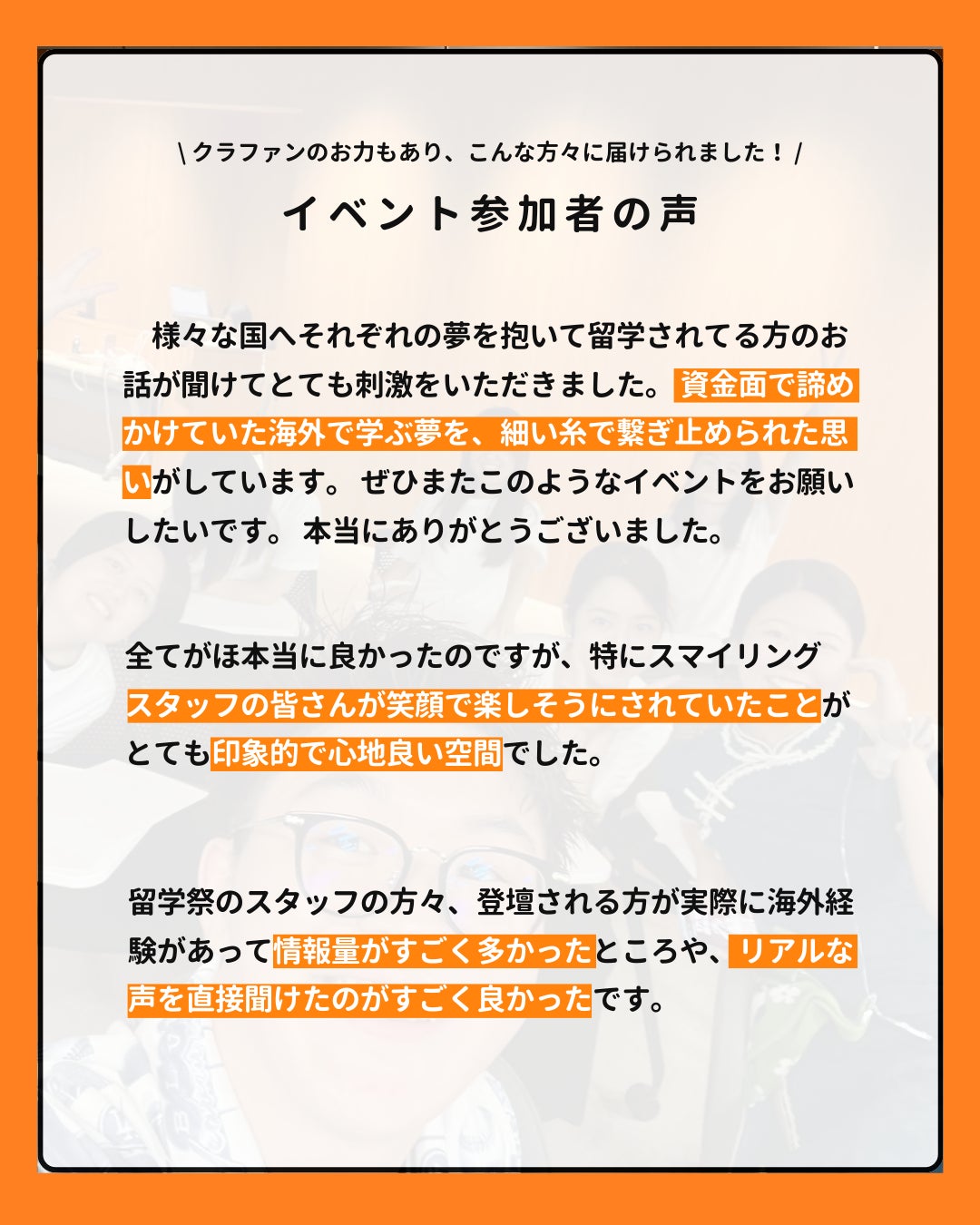 実際の参加者の嬉しい声も届いています。