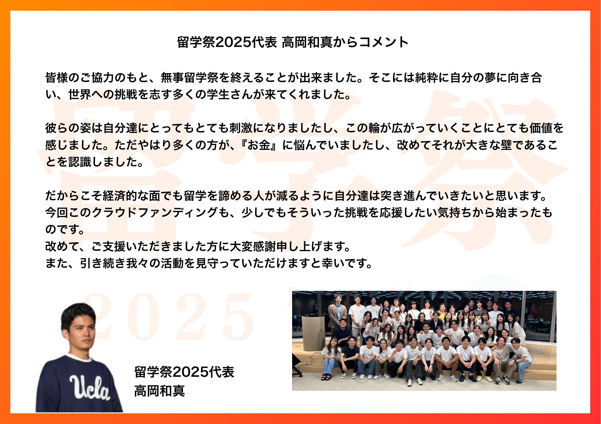 【留学祭2025代表 高岡和真からのコメント】
