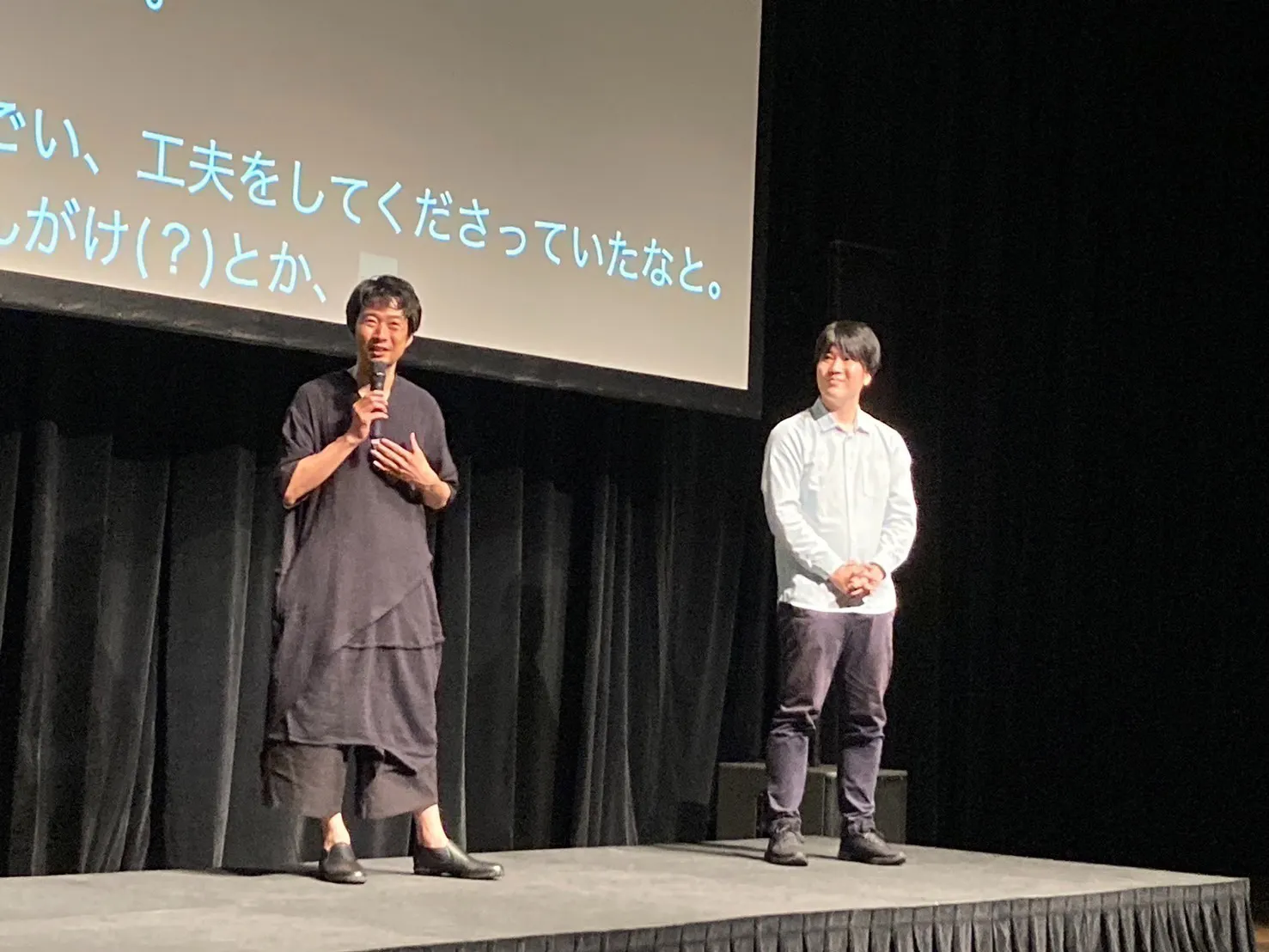 2025/06/11 12:545月31日に開催された「ユニバーサル上映会」のレポートをお送りします。ユニバーサル上映会~Cinema is Inclusive~こちらのプログラムは、誰もが映画を楽しめることを目指したバリアフリー上映イベントです。 「視覚障がい者向けの音声ガイド」と「ろう者・難聴者向けの字幕ガイド」を備えた作品の上映を実施いたしました。ガイド付きの作品はまだまだ限られており、そんなもどかしさを少しでもなくしたいという思いから開催されました。音声ガイドと字幕ガイドを同時に付与して、こちらの2作品が上映されました。『演じる女』監督:照屋年之(ゴリ) 主演:満島ひかり©Okinawa Prefectural Government. All Right Reserved.『日の出を知らない街』監督:増田彩来 出演:細田佳央太、井之脇海、小西真奈美、井浦新 ほか▼Youtubeでガイド付き作品をご視聴いただけます。『日の出を知らない街』本編 (設定「日本語字幕」を選択いただきますとろう者・難聴者向けの字幕ガイドが表示されます)『日の出を知らない街』本編(音声ガイド版)トークイベント上映が終わったあとは、ろう者・字幕ガイド制作者の高畑寿延さんと、ろう者俳優の今井彰人さんにお話をお伺いしました!手話通訳の方をお呼びしたり、ステージに要約筆記を投影したりとバリアフリーなトークイベント。会場には、ろう者のご来場者さまもいらっしゃっていて、高畑さん・今井さんと手話でお話を交わしていました。特に印象的だったのは、高畑さんがフィードバックを行った字幕ガイドの「電話の向こうから聞こえてくる」という表現に違和感を感じたというお話。「聞こえてくる」表現が伝わりづらいのは、当事者の方に聞いてみないとわからない感覚だとハッとさせられました。字幕ガイドを利用される方の実際の声を聞くことができてとても興味深かったです。身体障がいに関わらず、自分以外の人のことを自分だけで理解するのは難しいことだと思います。自分と違う部分、わからない部分があれば、お互いに素直に歩み寄っていくことが大事なのだと考えさせられました。また、今井さんはろう者の役はろう者の俳優が演じるべきだと言います。どうしてだろうと思い聞いていると、視覚言語には視覚言語の表現があるからだと。視覚言語が身についていない人からすると同じ動作に見えても「ねえねえと呼ぶ時」「何回も呼ぶ時」「緊急事態が起きて呼ぶ時」などと、伝えたいことが全く違うのだと教えてくれました。高畑さんと今井さんに実演していただきましたが、正直違いがあまりわからなくて驚きました。そのお話にもすごく惹き込まれて、もっと深く知りたくなりました。高畑さん、今井さん、すごく素敵なお話をありがとうございました。トークを終えた2人には、手を叩く拍手と共に、会場から手話での拍手が送られました。(両手を上に広げて手首を回転させる、きらきら星のような動作)これからユニバーサル上映を行う会場が増えますように。ユニバーサル上映と言わなくなりますように。。体験スペース一方会場の外では、視覚障がいを模擬体験できる「ロービジョン体験メガネ」を試着できたり、移動できる点字部などが展示されたりと、PLAYWORKS さんによる、体験ブースも!上映後に体験されている方も多く見られました。 この上映会は、「当たり前」を見直すきっかけになった新鮮な体験でした。 もっと見る