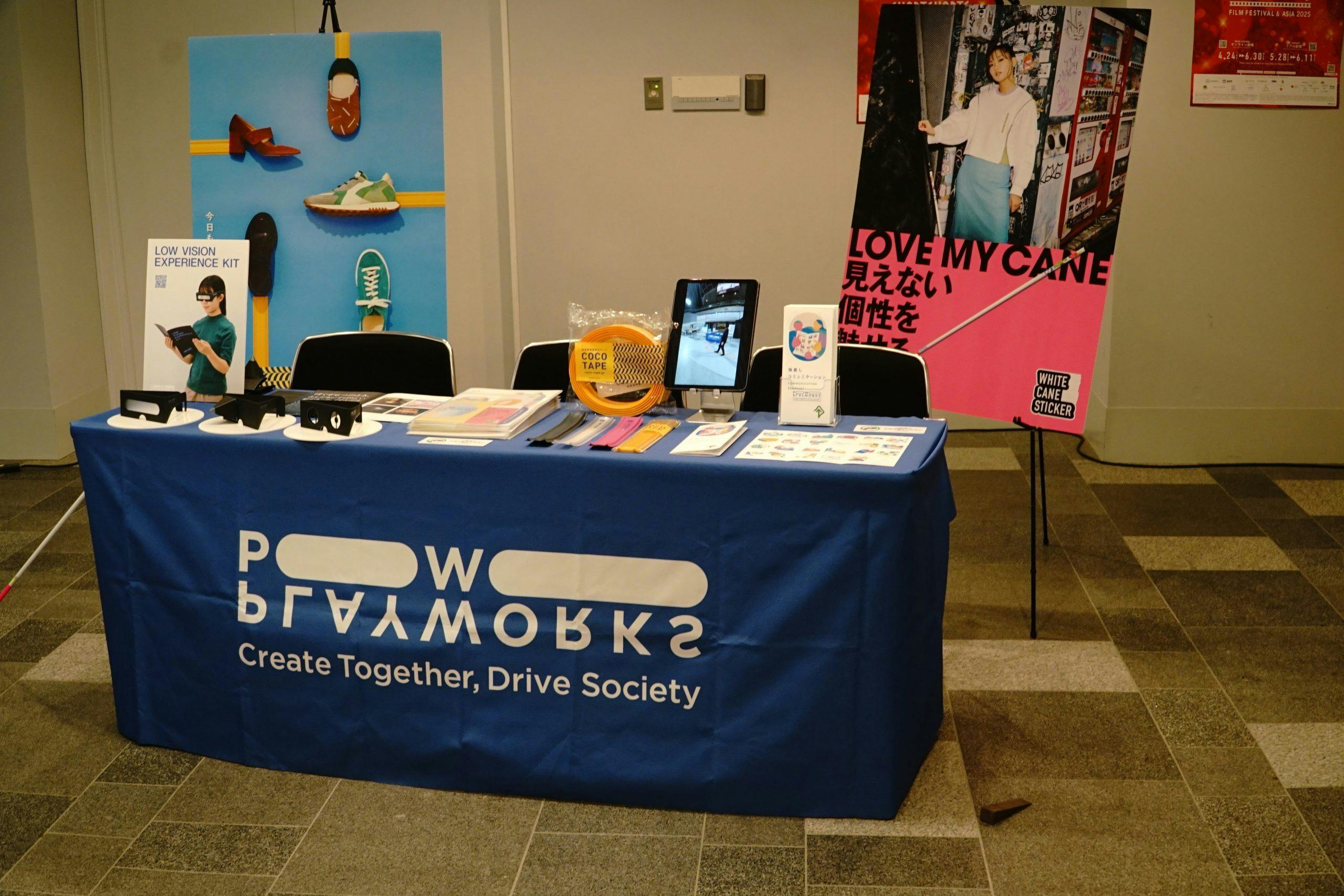 一方会場の外では、視覚障がいを模擬体験できる「ロービジョン体験メガネ」を試着できたり、移動できる点字部などが展示されたりと、