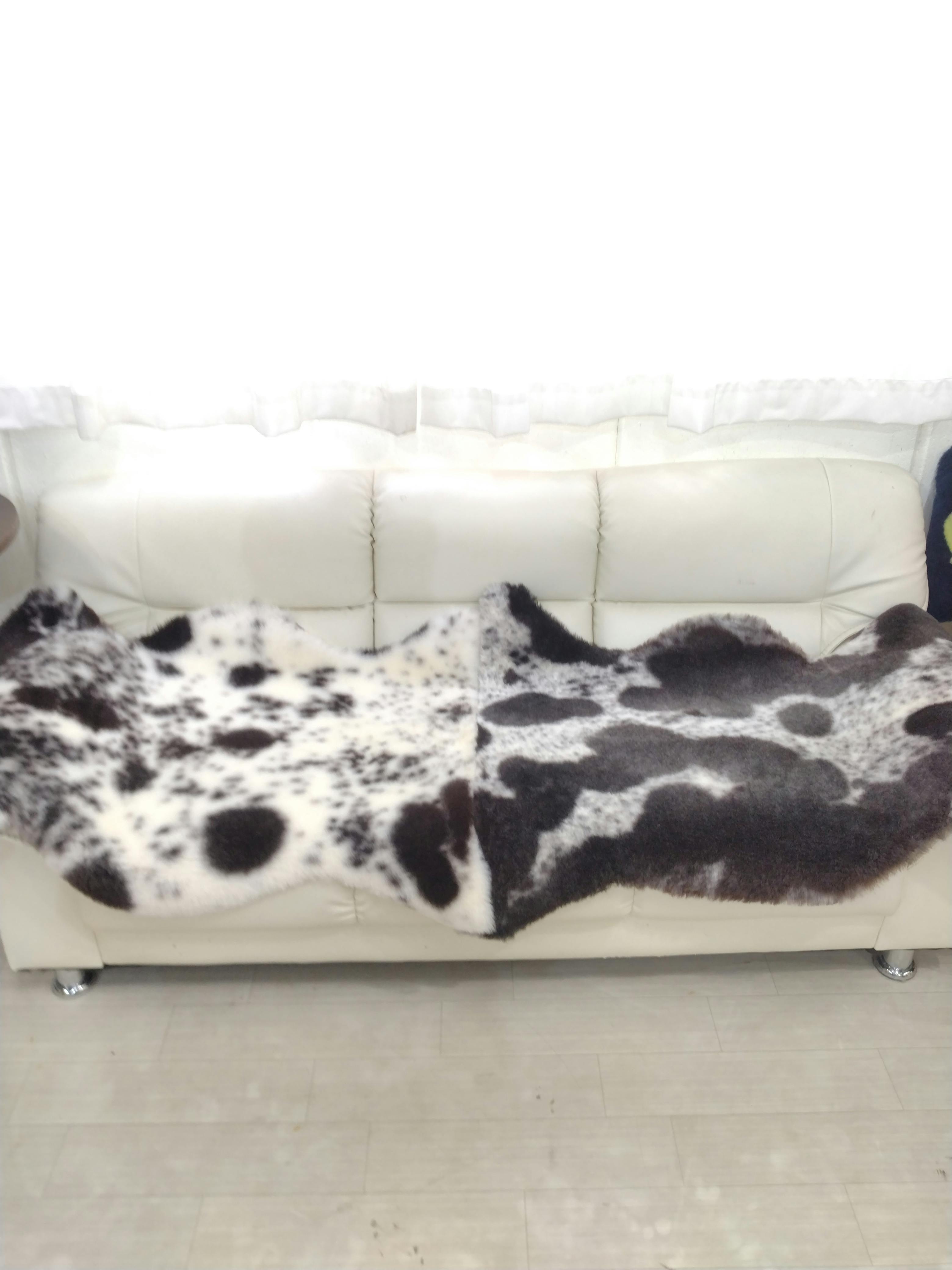数日前に入荷しました天然柄のムートンラグです。ムートンとは天然の羊毛皮のことですが、毛の模様も天然で、斑スタイルなので1枚1枚がオリジナルな模様でアートを感じます。