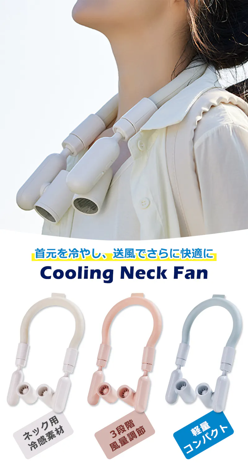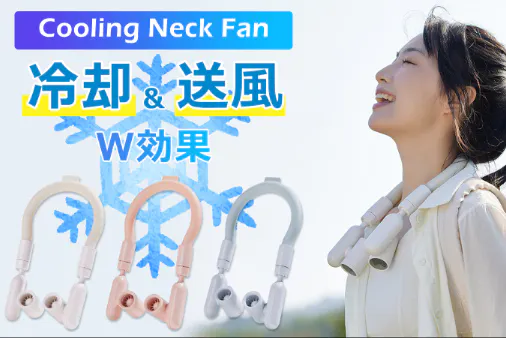 冷却リングは首にフィットし、ひんやり感が長時間持続。さらに、回転調整可能なファンユニットが狙った位置にしっかり送風し、首元から全身へ心地よい涼しさを届けます。
