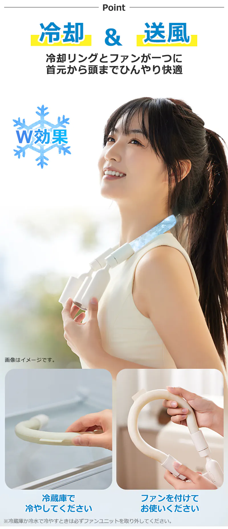 ◎首元冷却&送風で涼しさアップ!