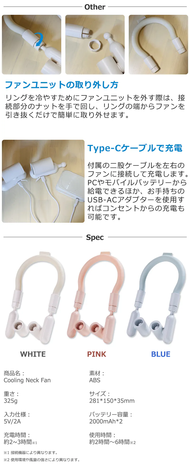 ◎ネックリングからファンを外すのも簡単!