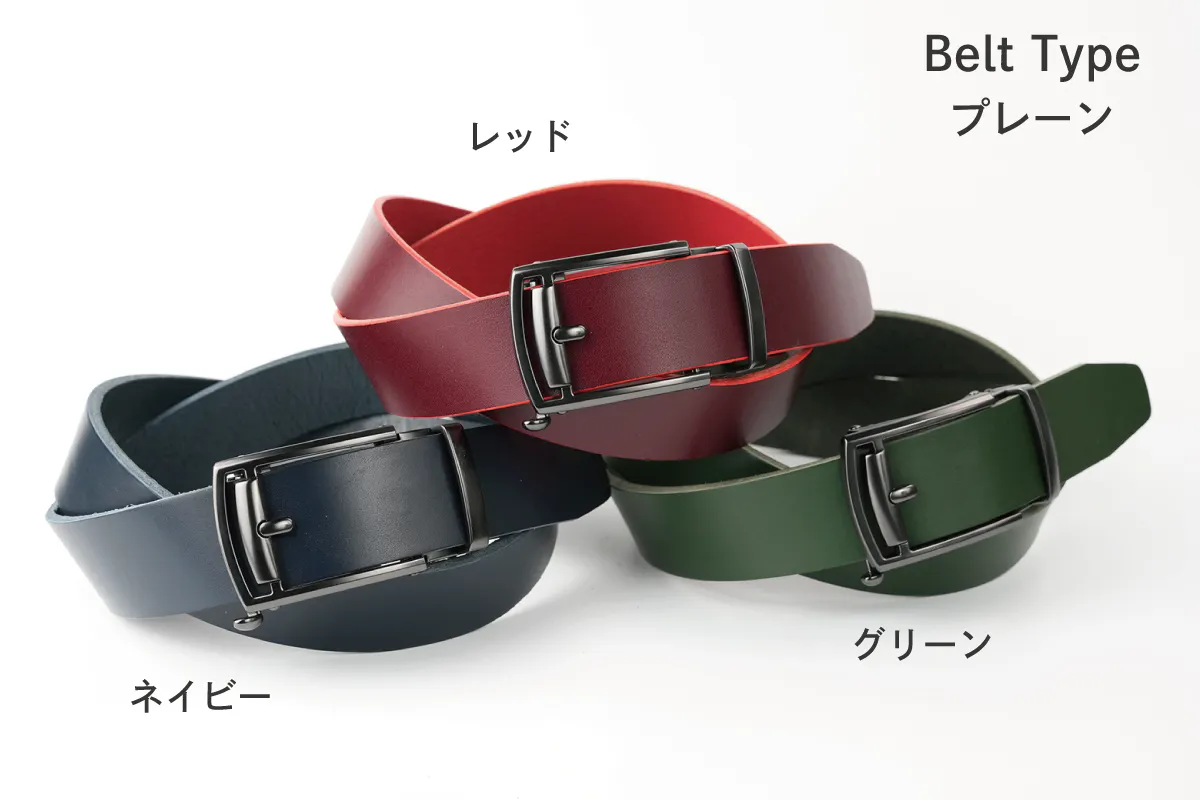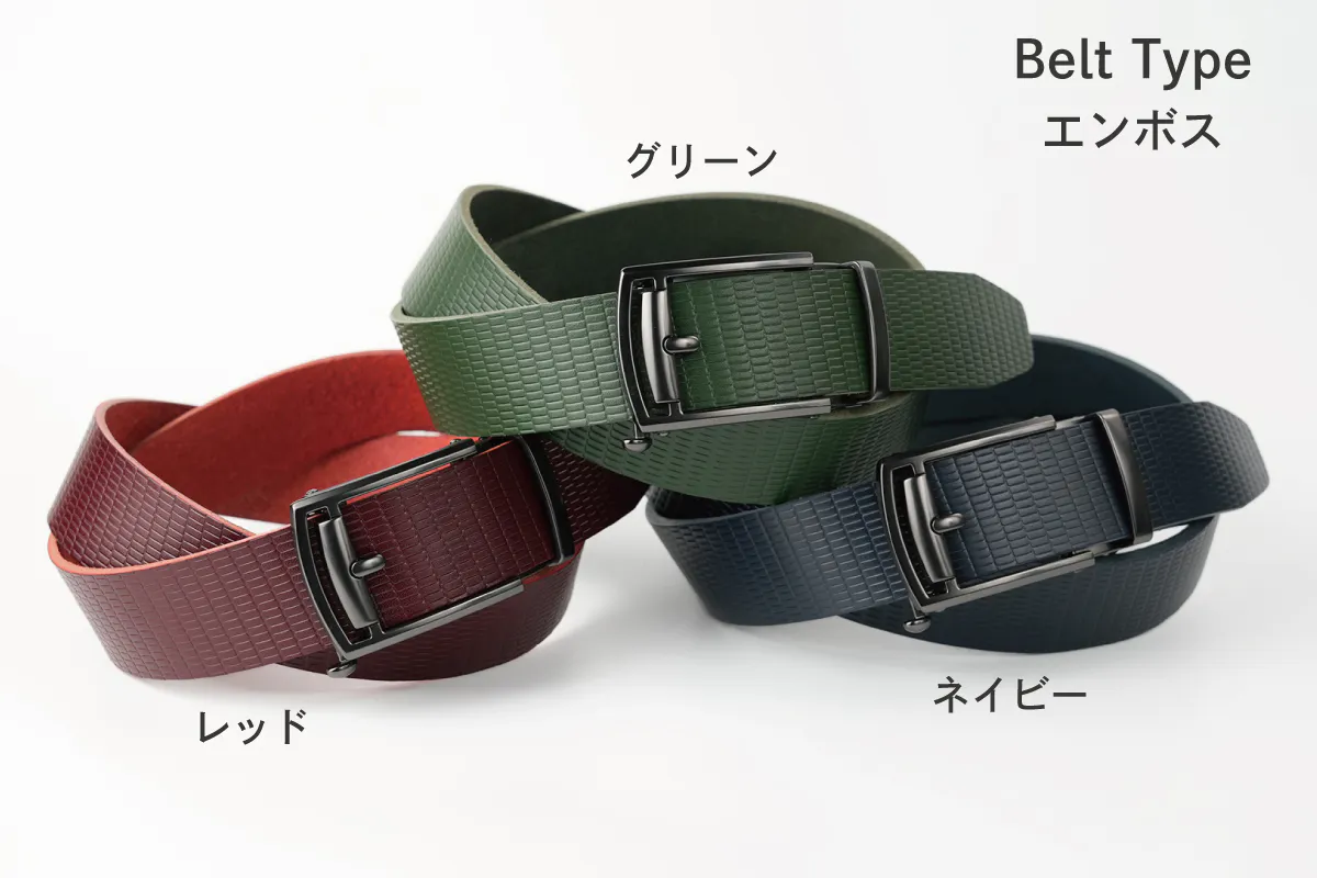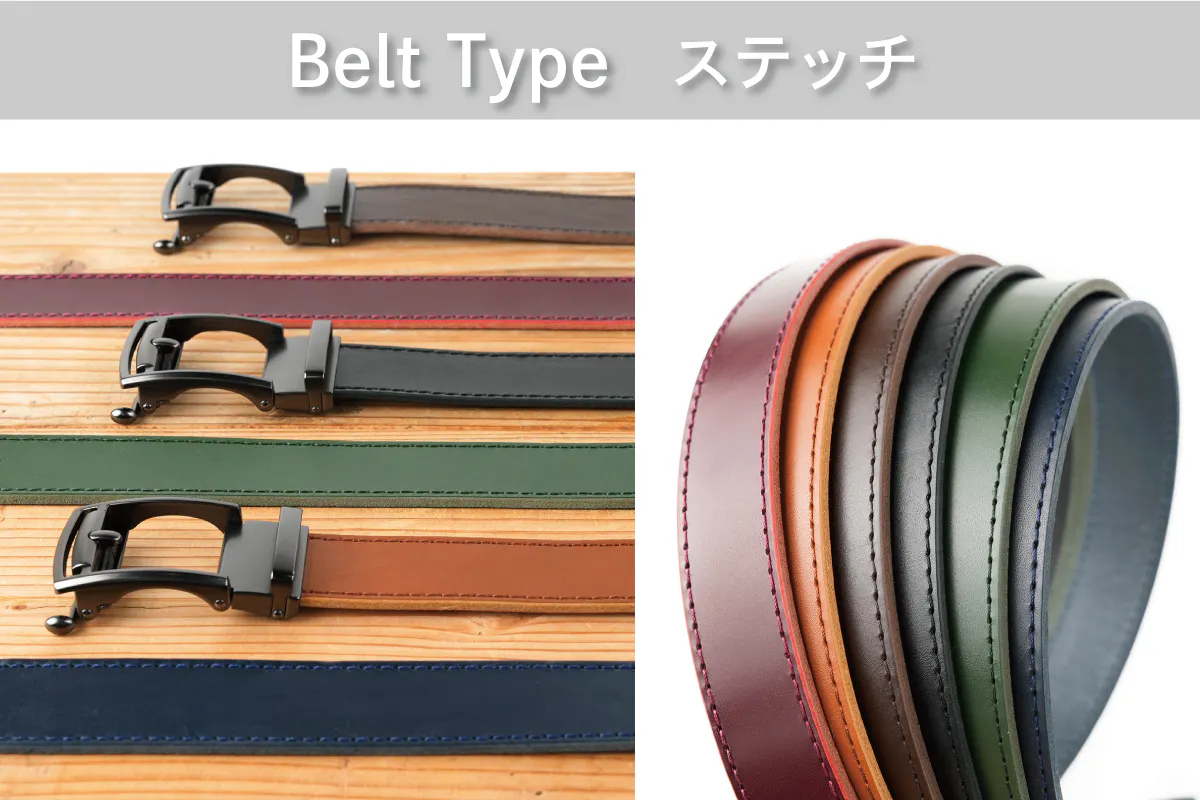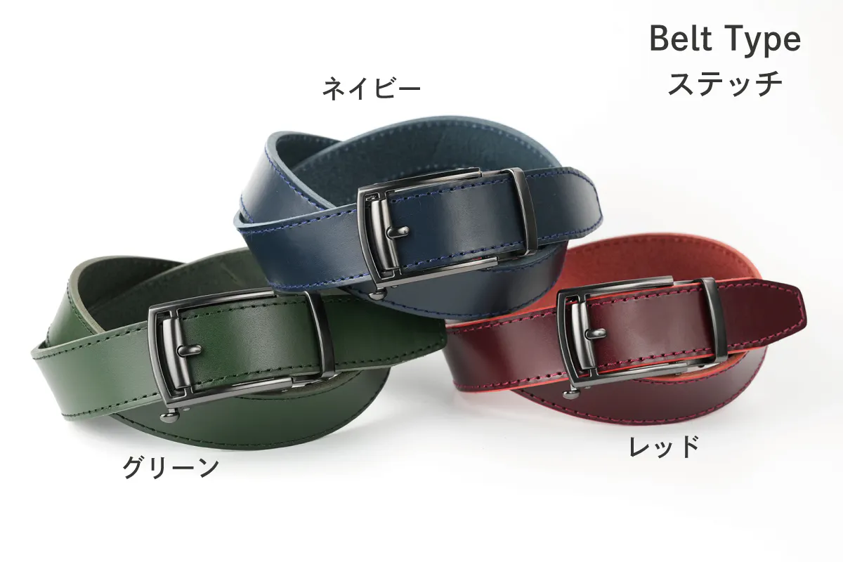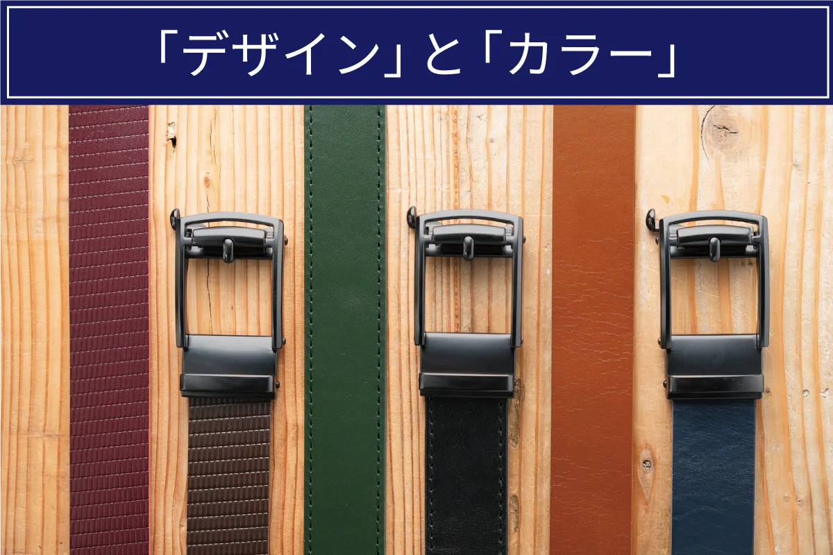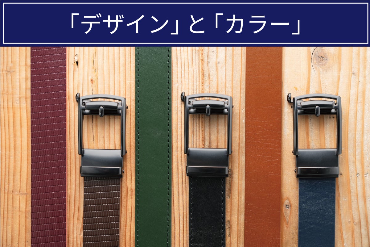 レザーベルトを楽しんでお選びいただくために「3デザイン」「6カラー」の18通りをご用意しました。