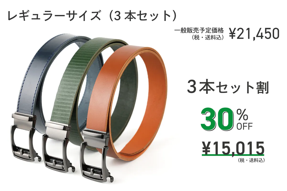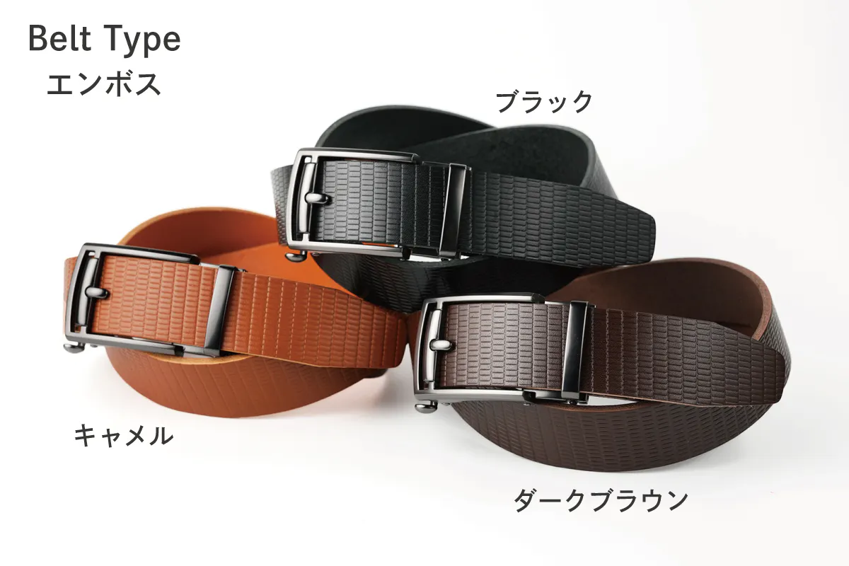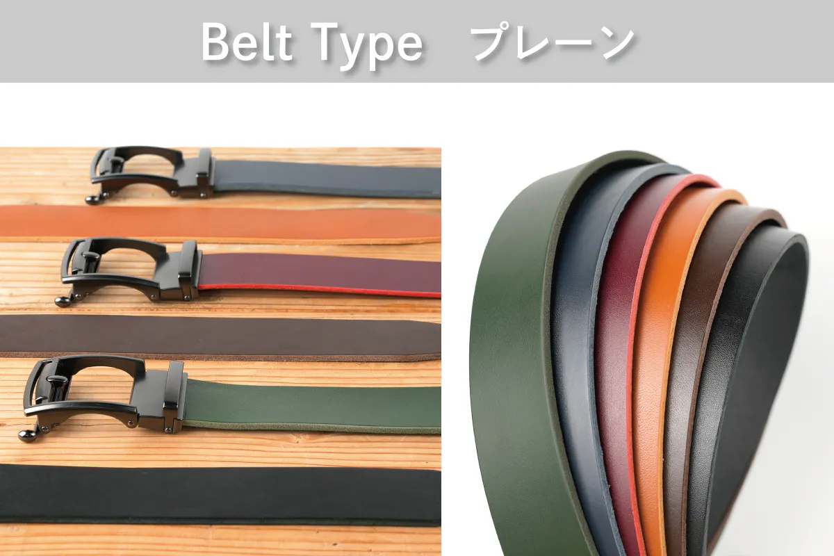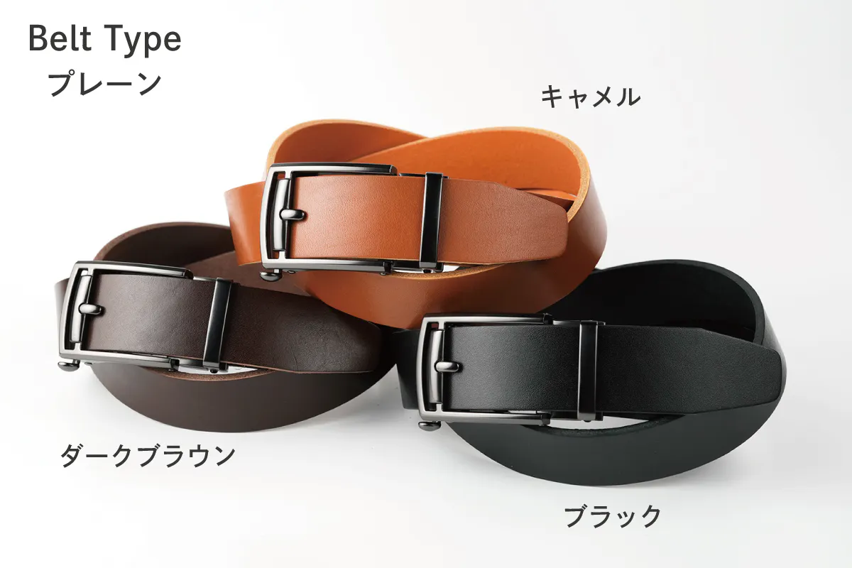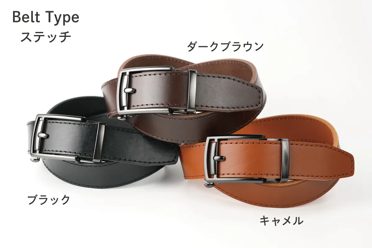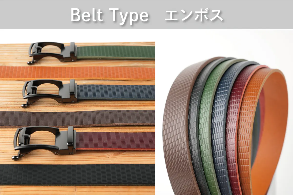 レザーベルトを楽しんでお選びいただくために「3デザイン」「6カラー」の18通りをご用意しました。