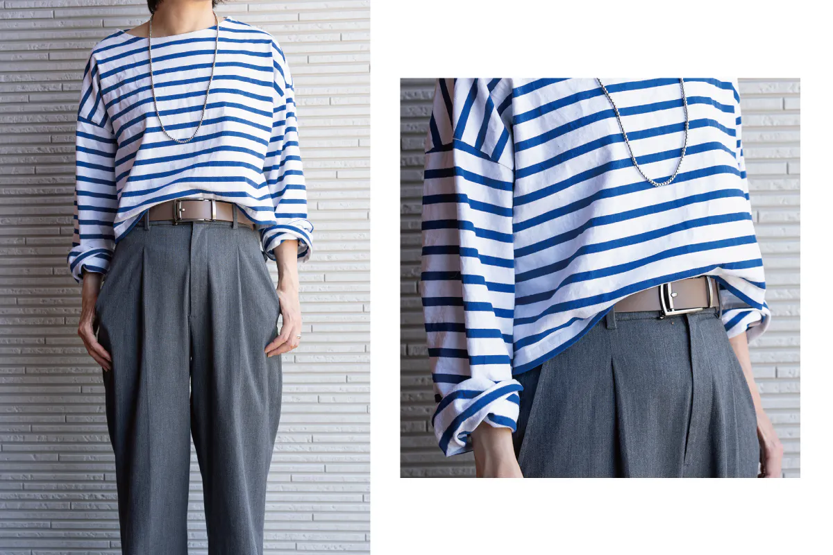 ビジネスシーンでも休日でも幅広いスタイリングでお使いいただけます。