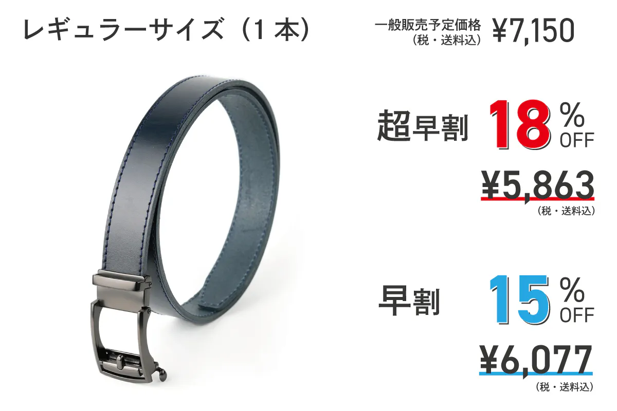 第一弾では革の厚みが3.2mm〜4mm厚の革を使用しており、革の個体差により厚みにも変動がありました。リターン発送後、支援者様からベルトの止まりが甘いというご指摘があり、検証の結果革が厚すぎることが原因であると突き止めました。第一弾でいただいた貴重なご意見を元に改良し、革の厚みを一定化して、これまで以上にピッタリと止めることが可能となりました。