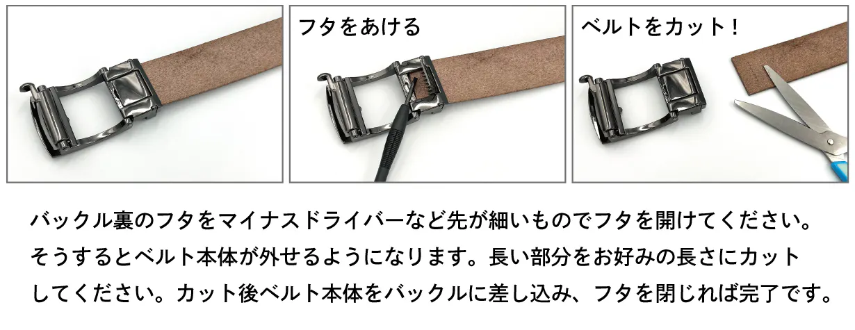 ロングサイズ・スーパーロングともに、ベルトの革は一枚革で繋ぎ目もありません。レギュラーサイズと同様の仕様となっております。