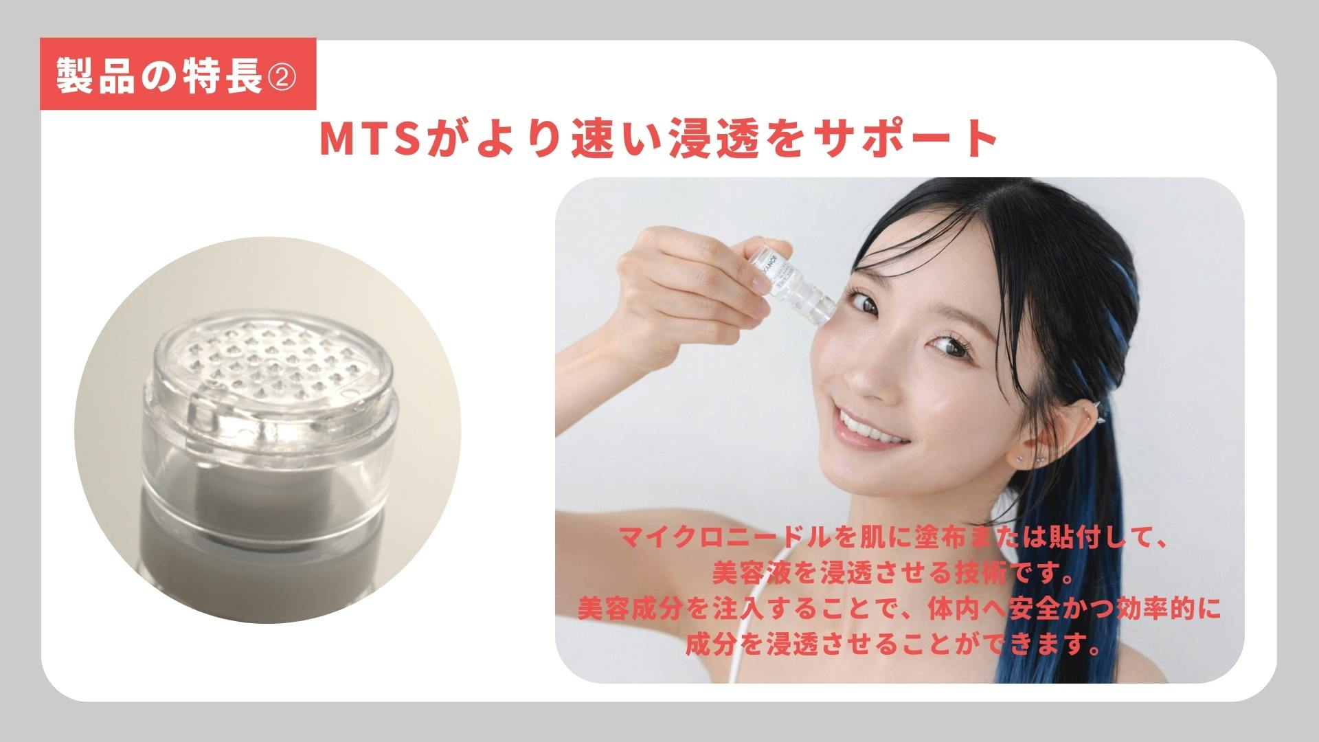 ・目に見えないほど小さなマイクロニードル(MTS)で、美容成分をより効果的・集中的にお肌に浸透