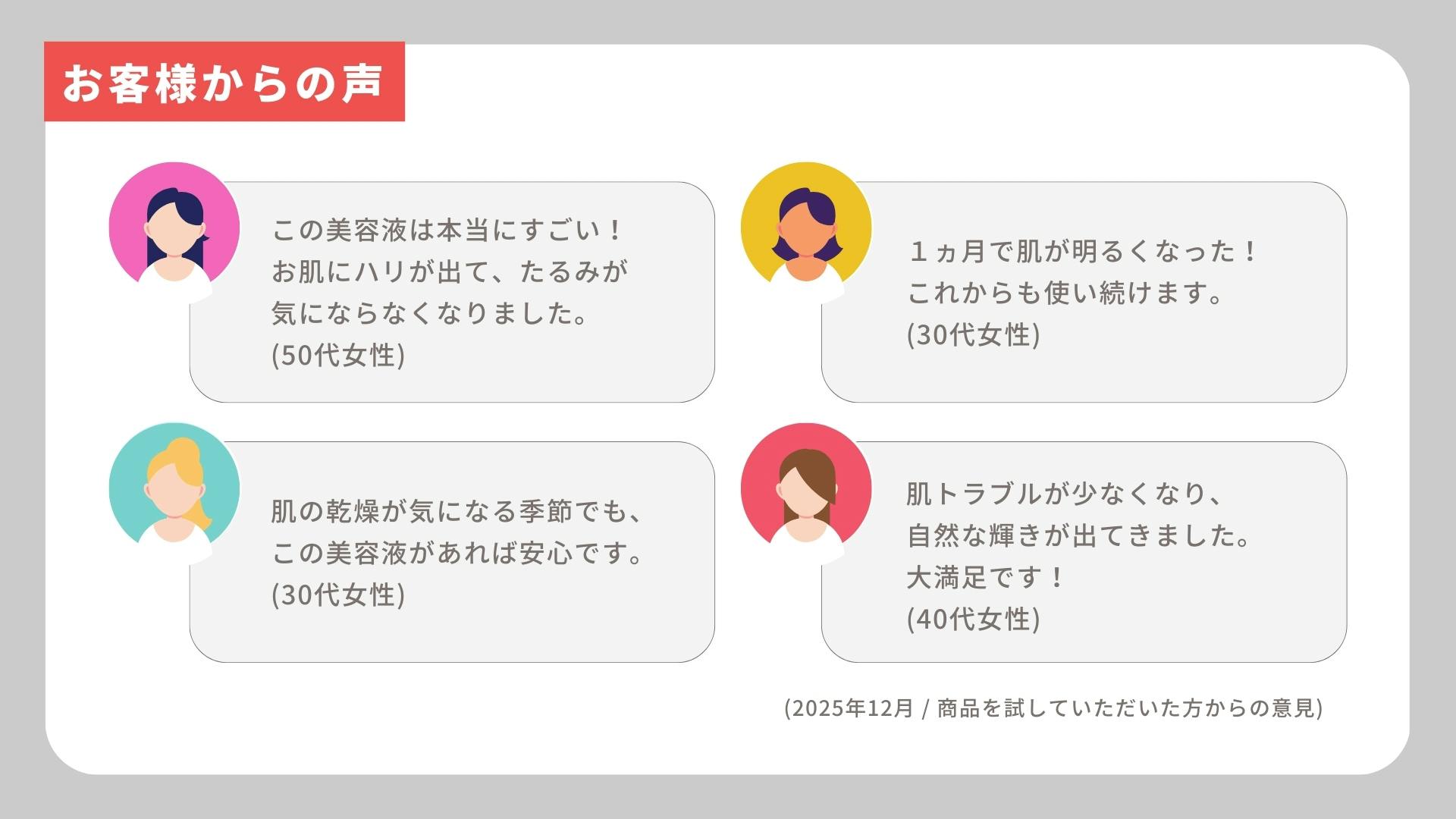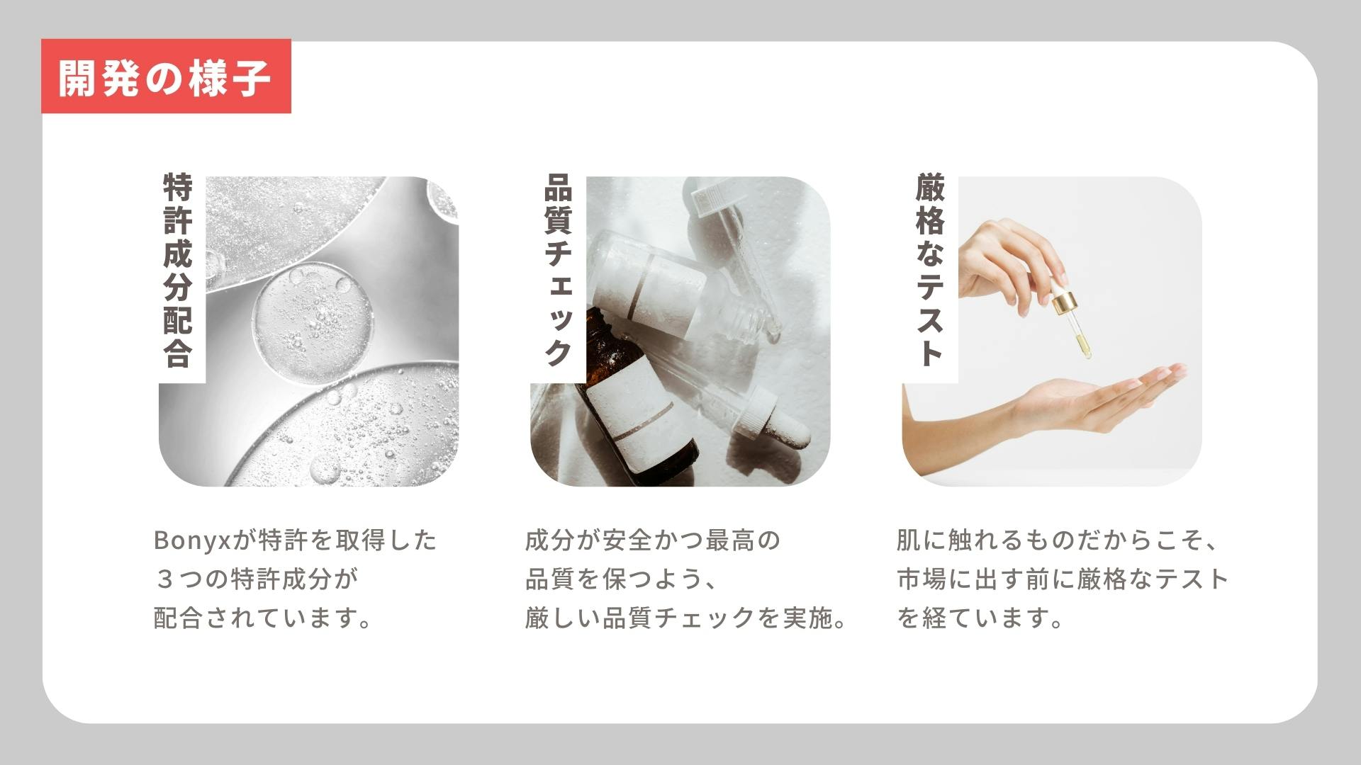 医療機器メーカーだからこそ実現できた、下記3つの独自技術で完成した美容液です。