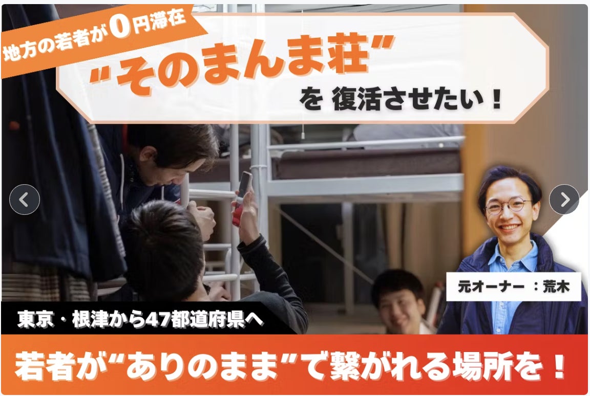 左上のキャッチコピーを「地方の若者が0円滞在」に変更