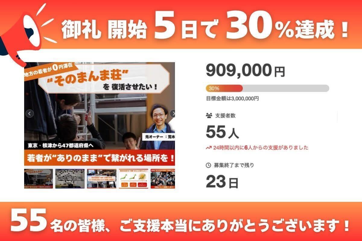 5日目にして55名より、90万9千円のご支援をいただきましたこと心より感謝申し上げます。