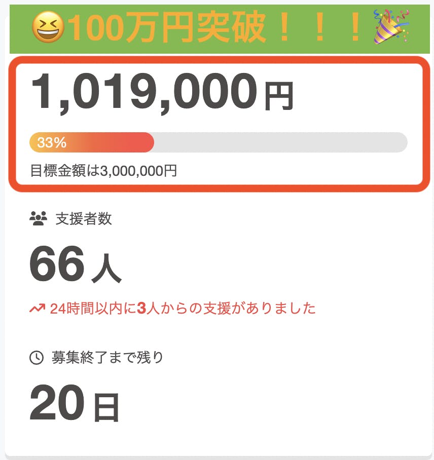 プロジェクト開始から1週間で、100万円の大台を突破しました。