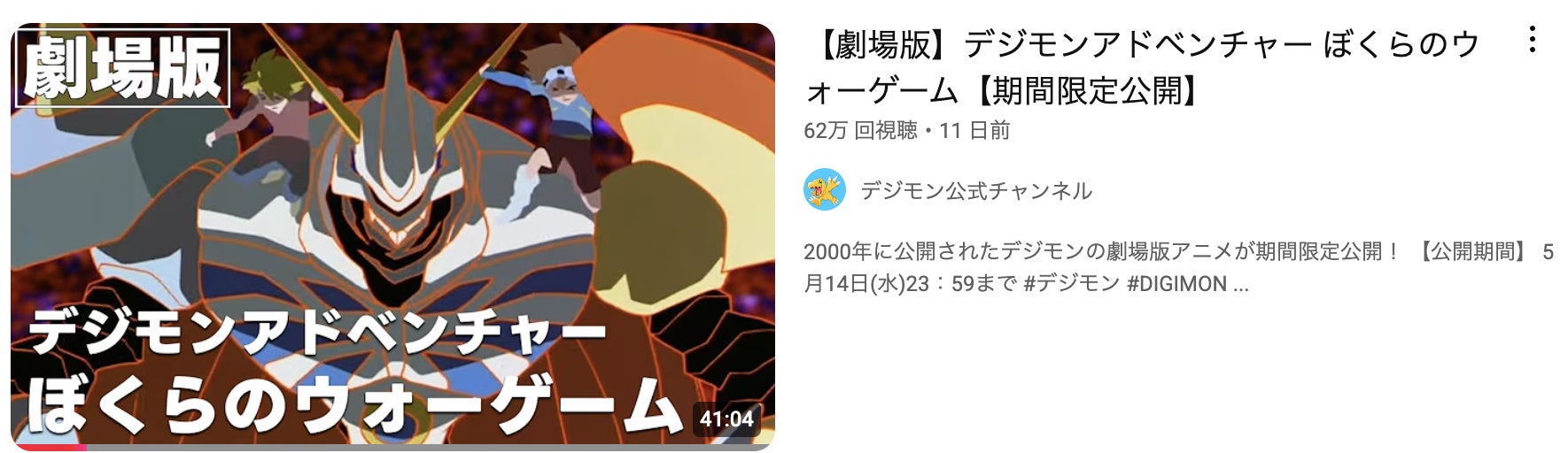 劇場版『デジモンアドベンチャー ぼくらのウォーゲーム』。