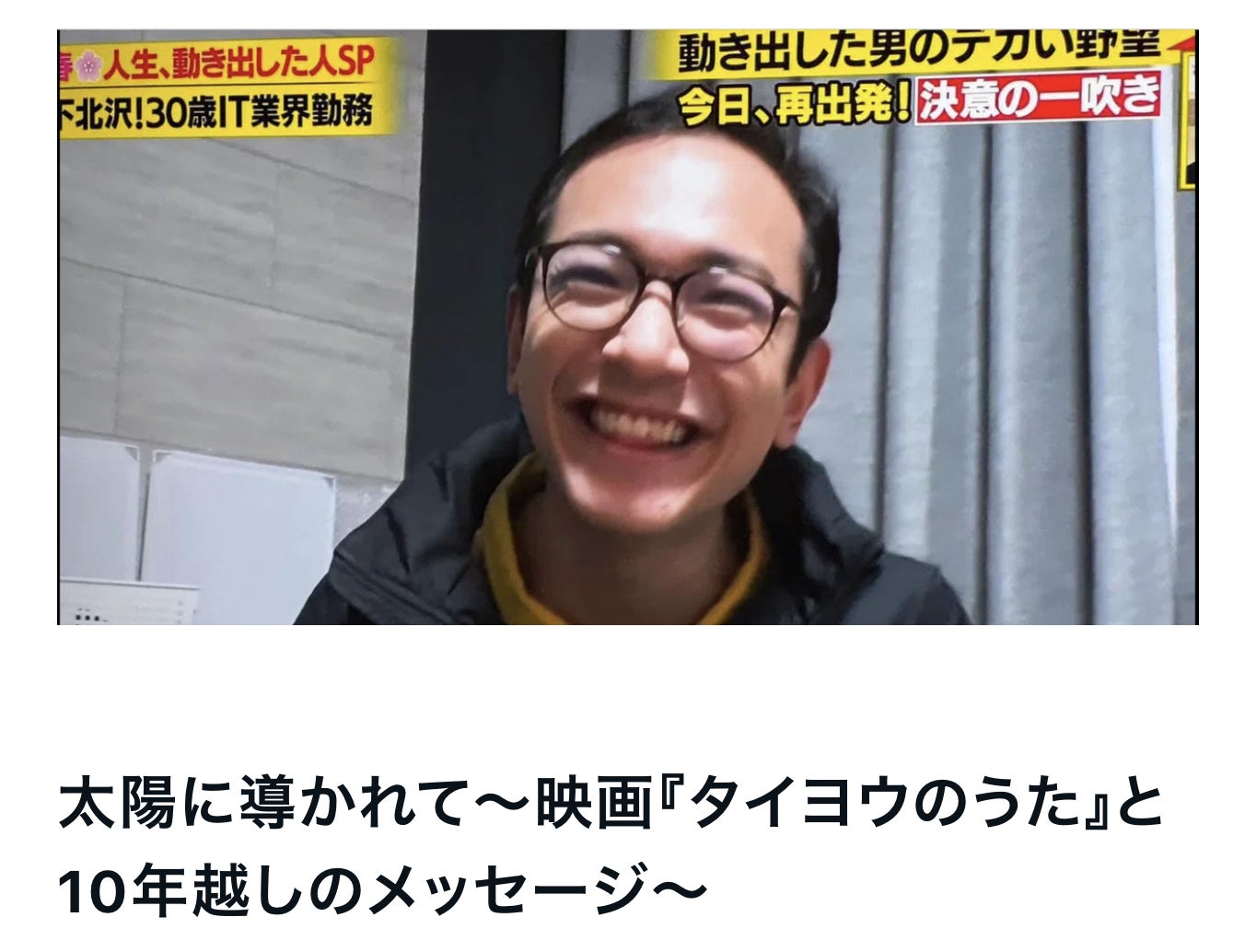 それは、僕自身の生き方を見つめ直し、そして10年間心の奥底にしまい込んでいた大切な記憶と向き合う、大きなきっかけとなった。
