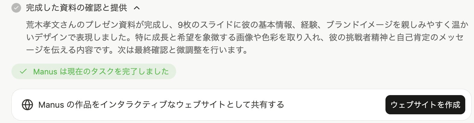 面白いな!やってみようかな、と思った方は以下からManusに飛べますので良かったら。