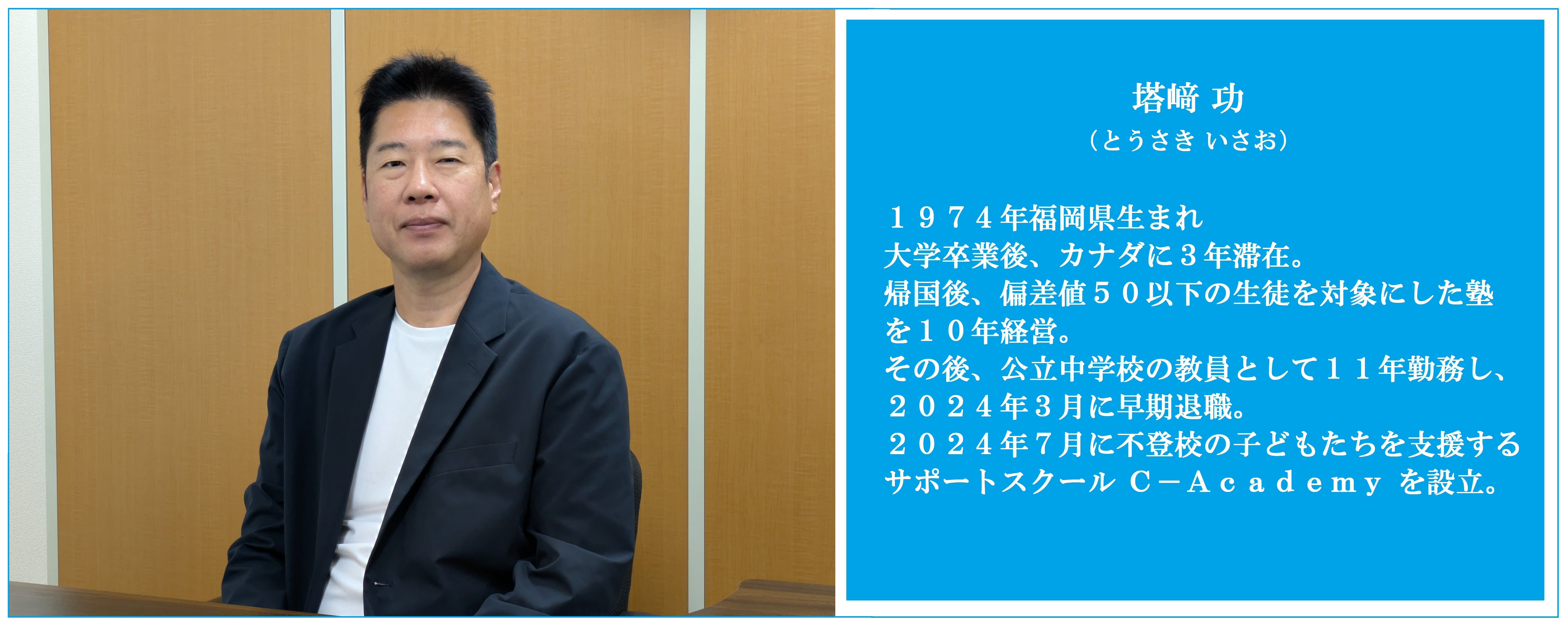 塔﨑功(とうさき いさお)と申します。福岡県北九州市で公立中学校の教員をしていました。