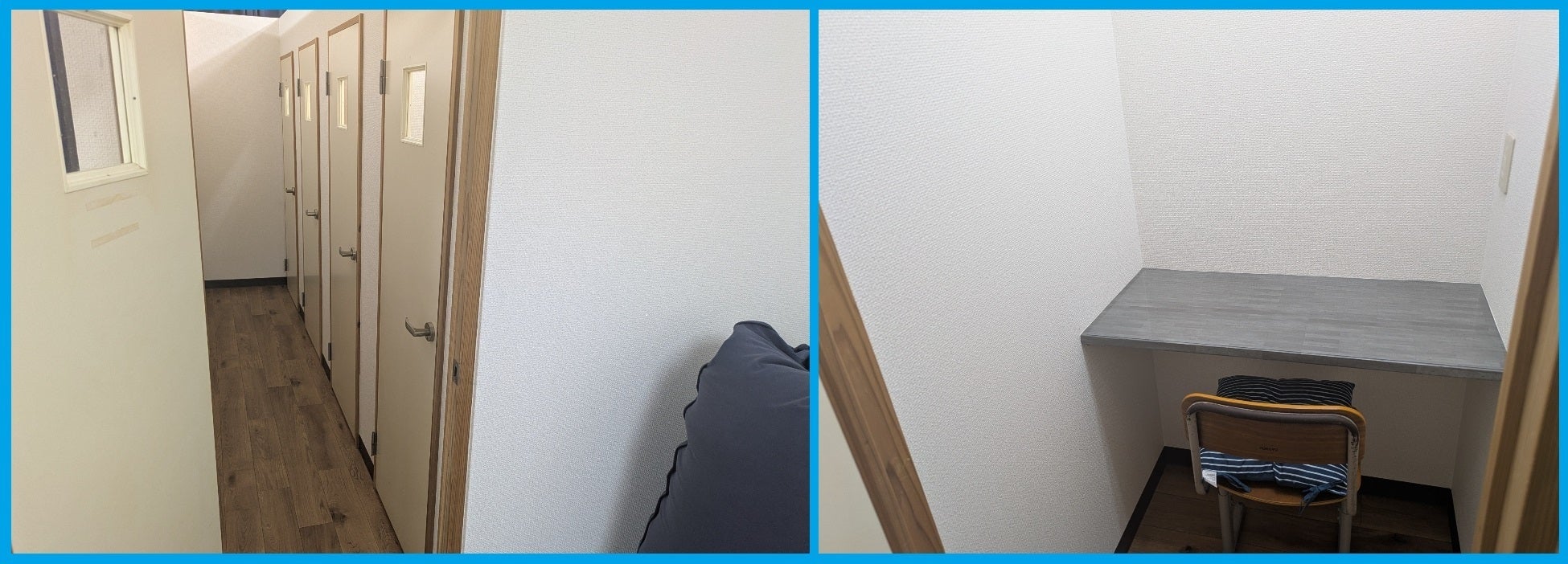 思い返すと、公立学校の教員を早期退職した直後は、スクールの設立にあたり、最初はまったく何もわからないところから始まりました。幸いにも、スクールの場所を探すために相談した不動産屋さんや、スクールが入ることになった建物のオーナーさんも私の考えに共感していただき、とても良い御縁に恵まれました。スクールが入る前は、この場所にテレフォンアポの会社が入っていたらしく、個室がまだ残っていました。それらも、視覚的な刺激が苦手な子どもたちにとっては、集中しやすい場所として活用できると思います。スクールの場所が決まってからは、さらに内装、机、イス、パソコンなどのハード面の準備だけではなく、保険や家賃などにもコストがかかります。開校には100万円以上かかりましたが、運営側に公的な補助金や助成金などの支援があることもなく、私自身のわずかな貯蓄と退職金を使いながら、なんとかスタートすることができました。