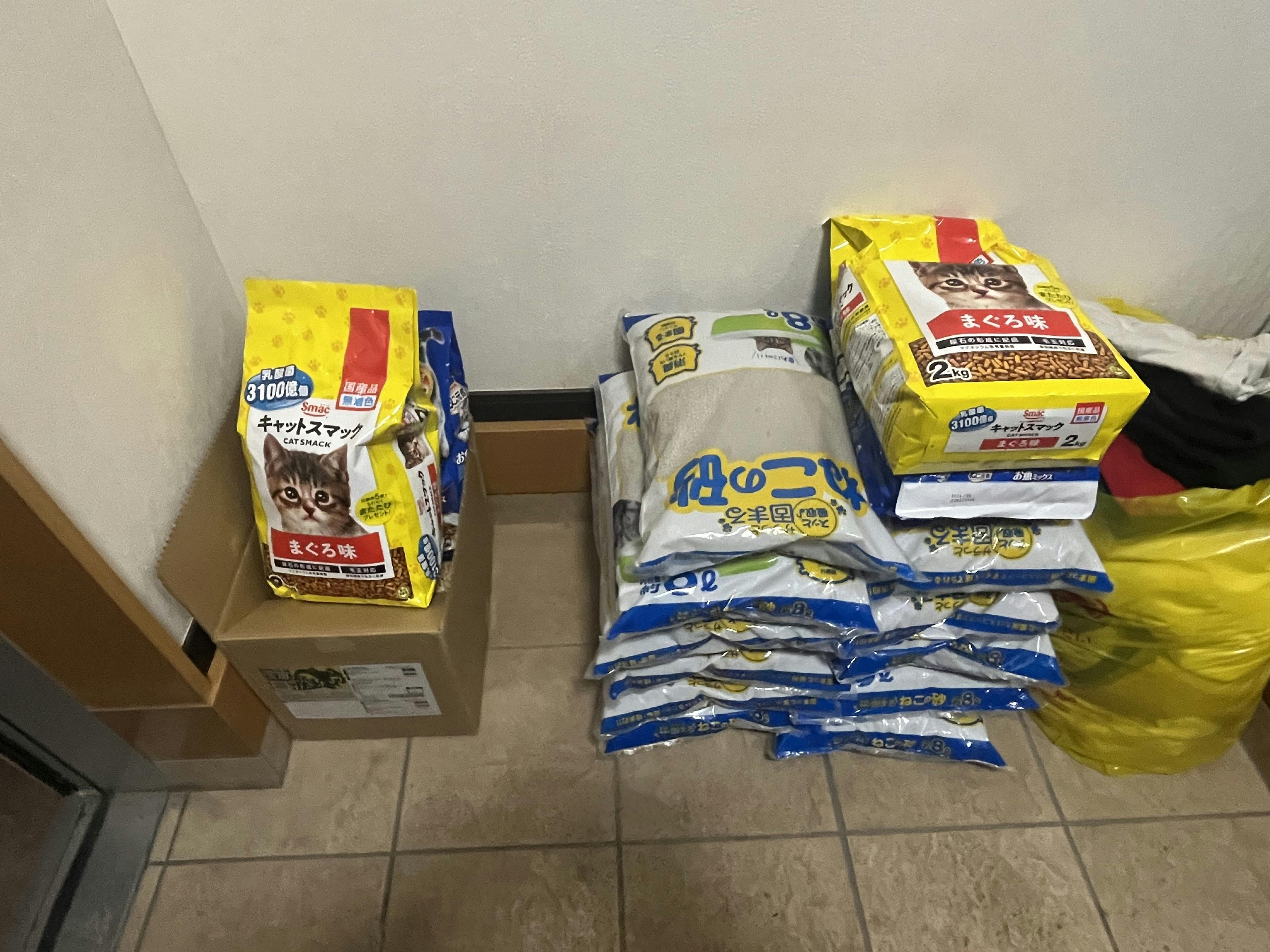 クラウドファンディング第一弾の成果で猫砂、猫ご飯を買いました。
