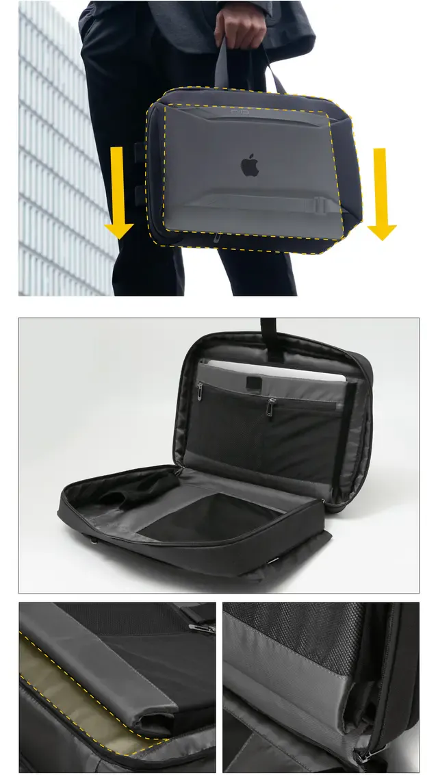 海外の建築家がビジネスバッグを家に見立て建築工学を用いて設計。ビジネスバッグの平均重量1〜1.3kgのなかで、どの持ち方でも軽く感じる構造。