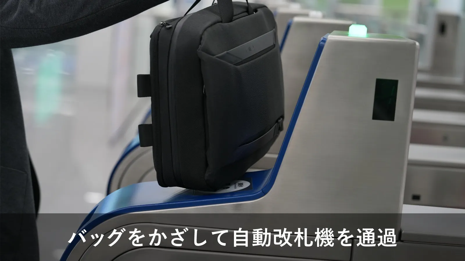 カバンを自動改札機にONするだけ!底部のICポケットで改札ラクラクスルー。