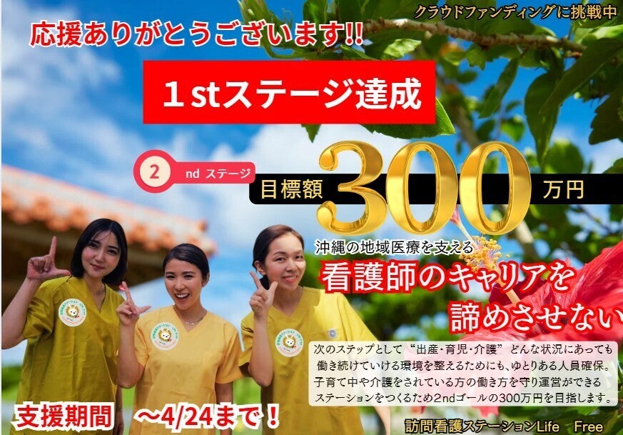 子育て中や介護をされている方の働き方を守り運営ができるステーションをつくるため2ndゴールの300万円を目指します。
