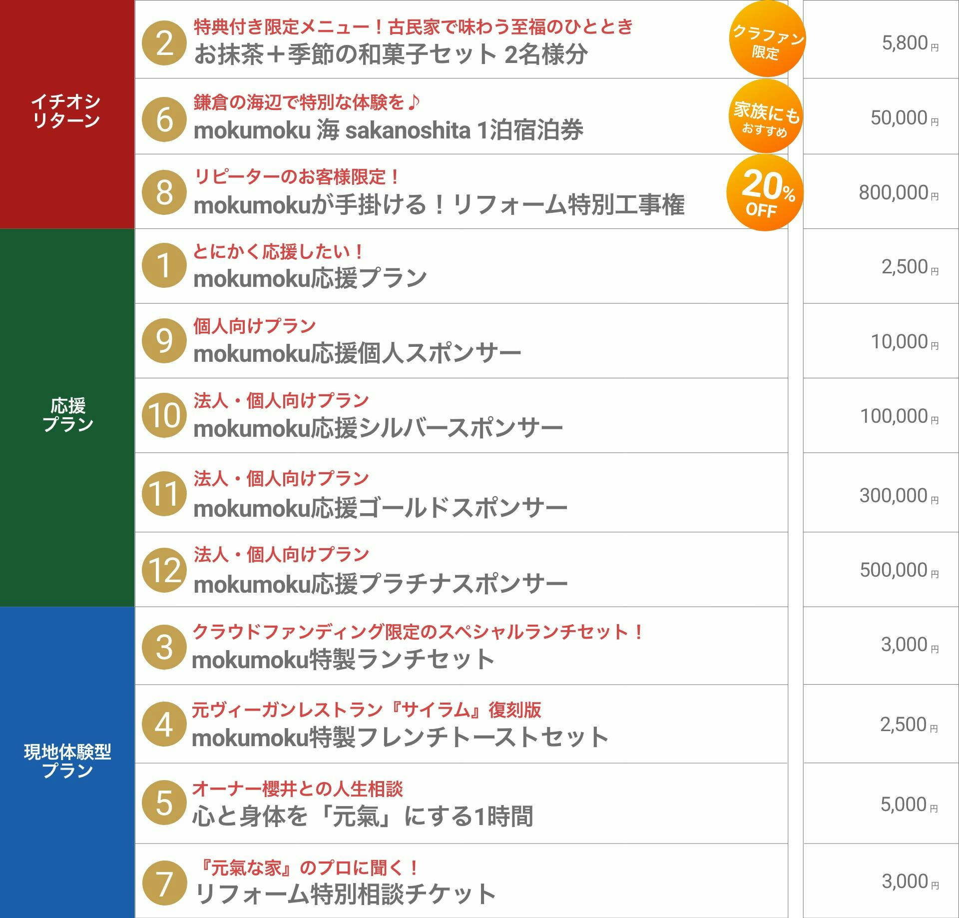 ※本リターンは、過去にmokumokuで住宅や店舗を建築されたリピーターのお客様限定です。