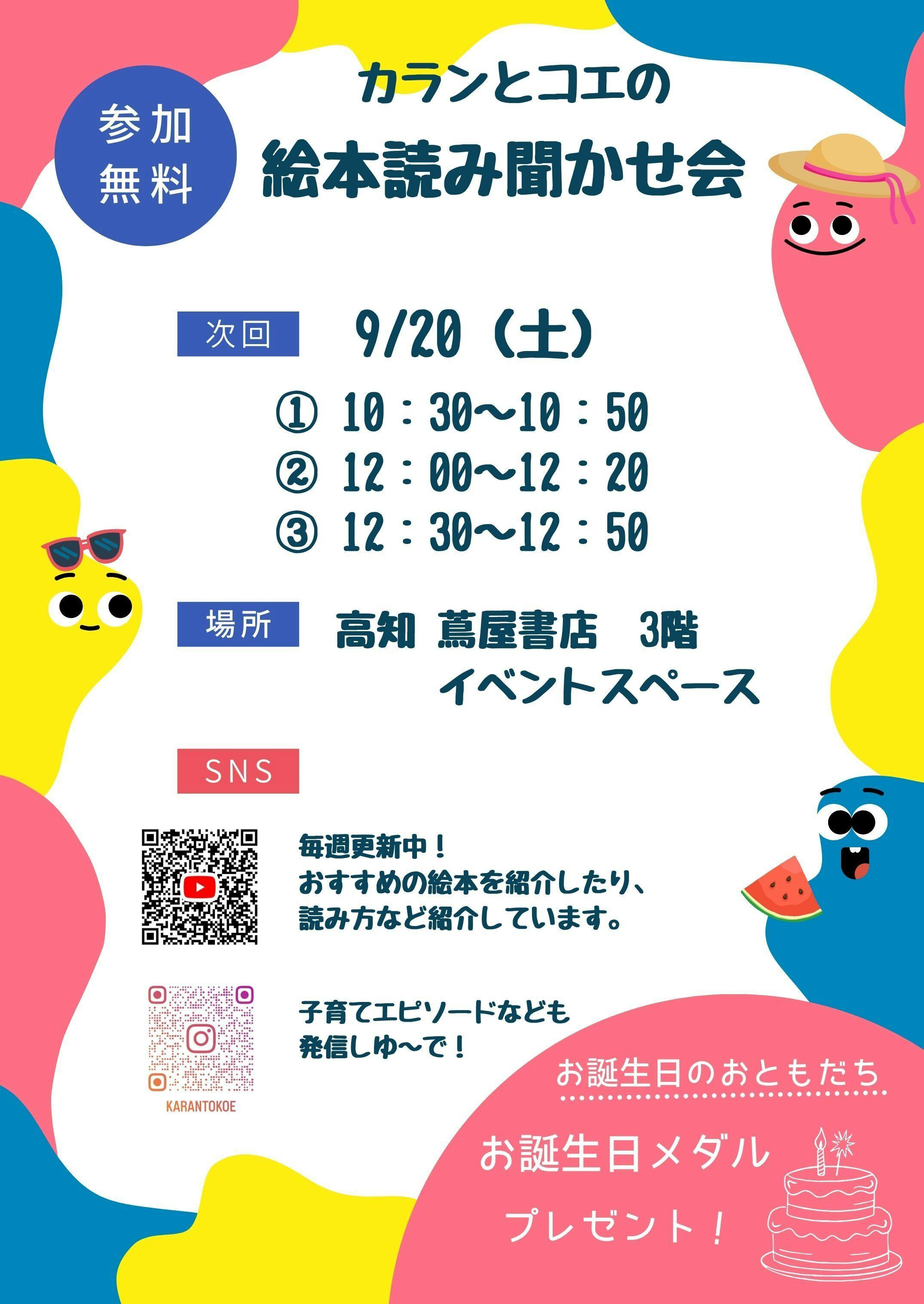 さて、来月は9/20(土)高知 蔦屋書店 3階イベントスペースにて
