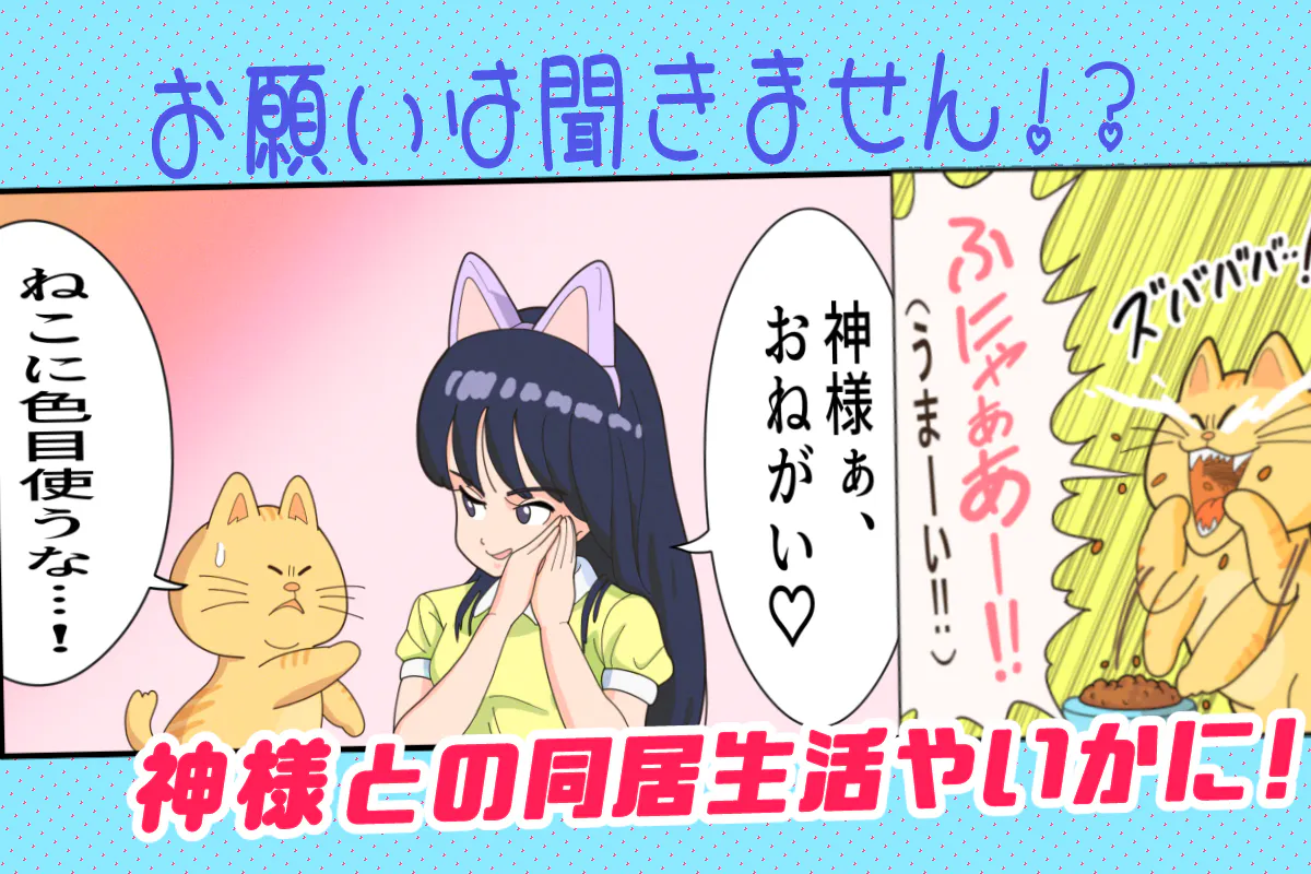 人口減少でこの町に住むよう、町民から懇願されたなつみ。お試し移住制度を利用するが、ねこ神様も「一緒に住んでやる!感謝しろ!」だって!?こうしてなつみとねこ神様の同居生活が始まった!