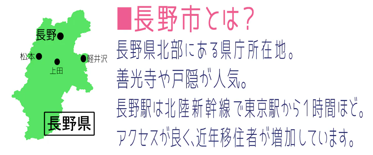 ①長野市中心部(主に善光寺周辺)➡商店街や古風な建物
