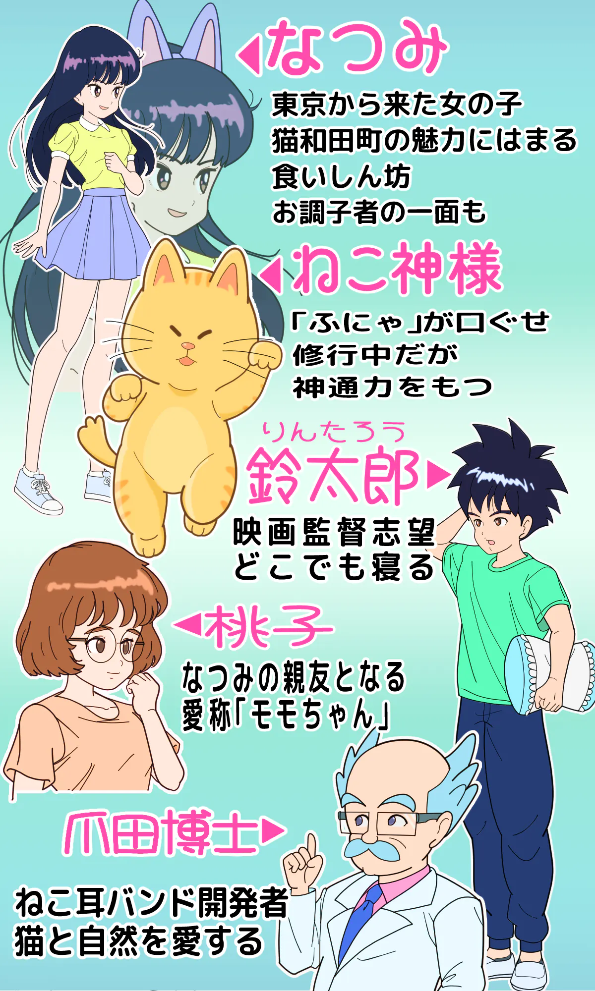 なつみは、猫和田町でひと夏を過ごしますが、一生に一度のかけがえの無い経験をします!その中で夏の要素がてんこ盛りに登場!皆さまのご参加のもと、夏の新たな決定版になれれば幸いです!