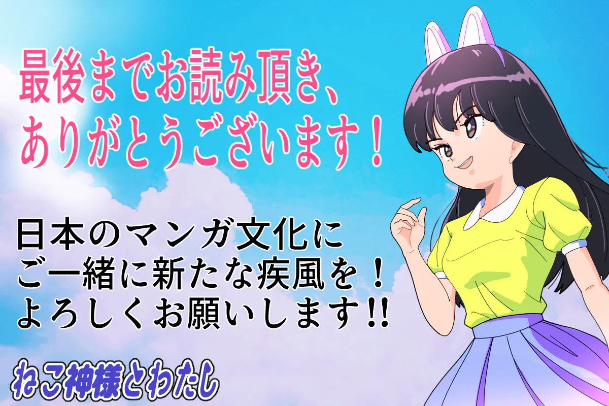 ネットマンガ掲載サイト「ジャンプルーキー」で「ねこ神様とわたし」を連載し、トップを目指します!ジャンプルーキーに投稿されたコンテンツの著作権は、著作者に帰属します。他サイトでの掲載も許可していますので、初動はpixiv等その他のサイトでも同時掲載して拡散します!